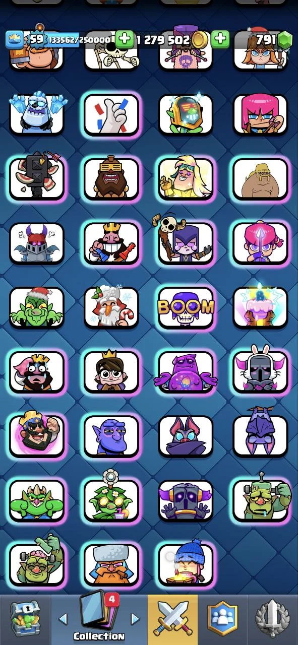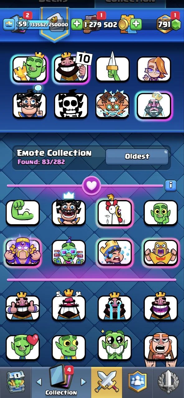 GOBLIN KISSING TROPHY 🏆 KT 15 ✨ LVL 59 ✨ CUPS[8528] ✨ MAX CARDS [87] ✨ ELITE [18] ✨ EVO [6] ✨ LVL 14 [69] ✨ EMOTES [83] ] 🔱 CARDS [118] ✨ 10000% SAFE