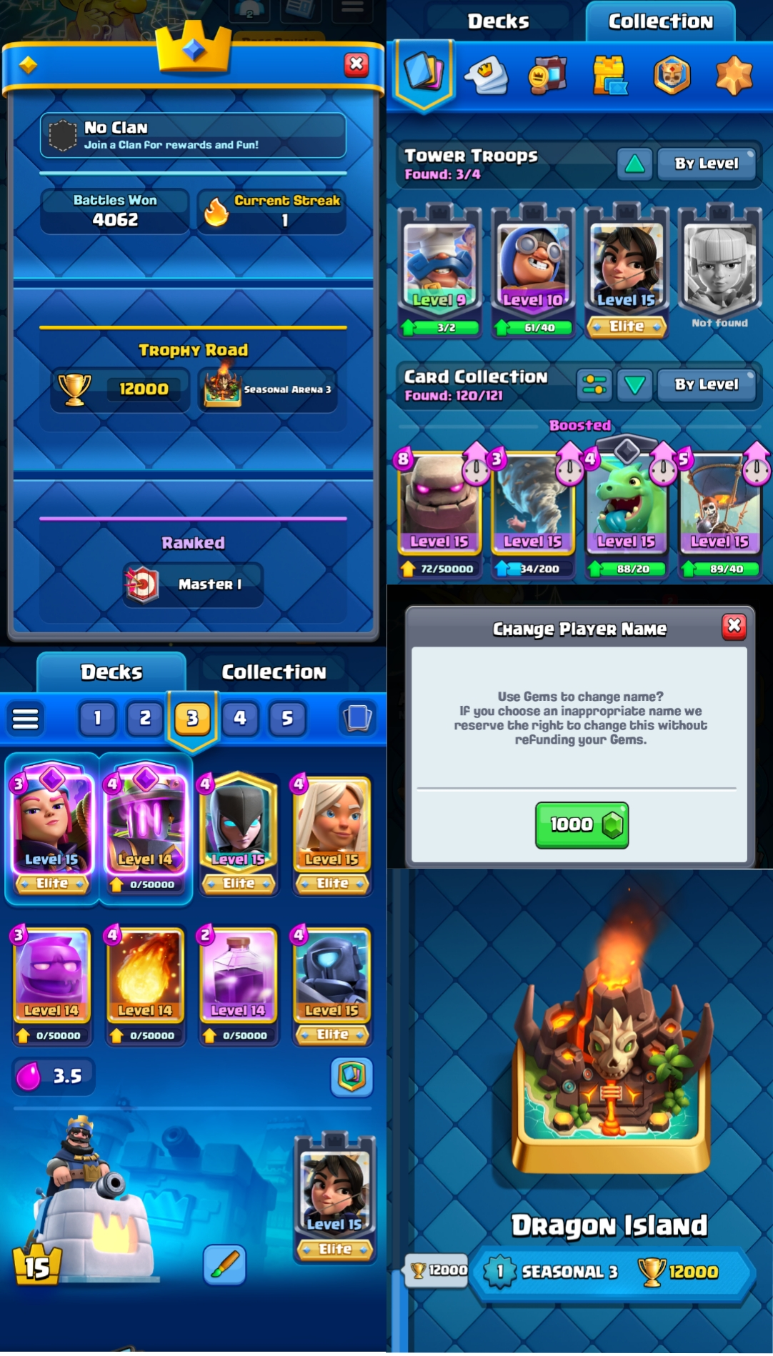 🌌 LEGENDARY STACKED 🌌 | 12000🏆 KT15⚡ | 🪬6 ELITES | 🌙ARENA 24 | 🎯LVL 55 | 💎132 EMOTES | 💫56 MAX CARDS | 🏆 MASTER TIER | 🚀 FULL ESS • INSTANT DELIVERY