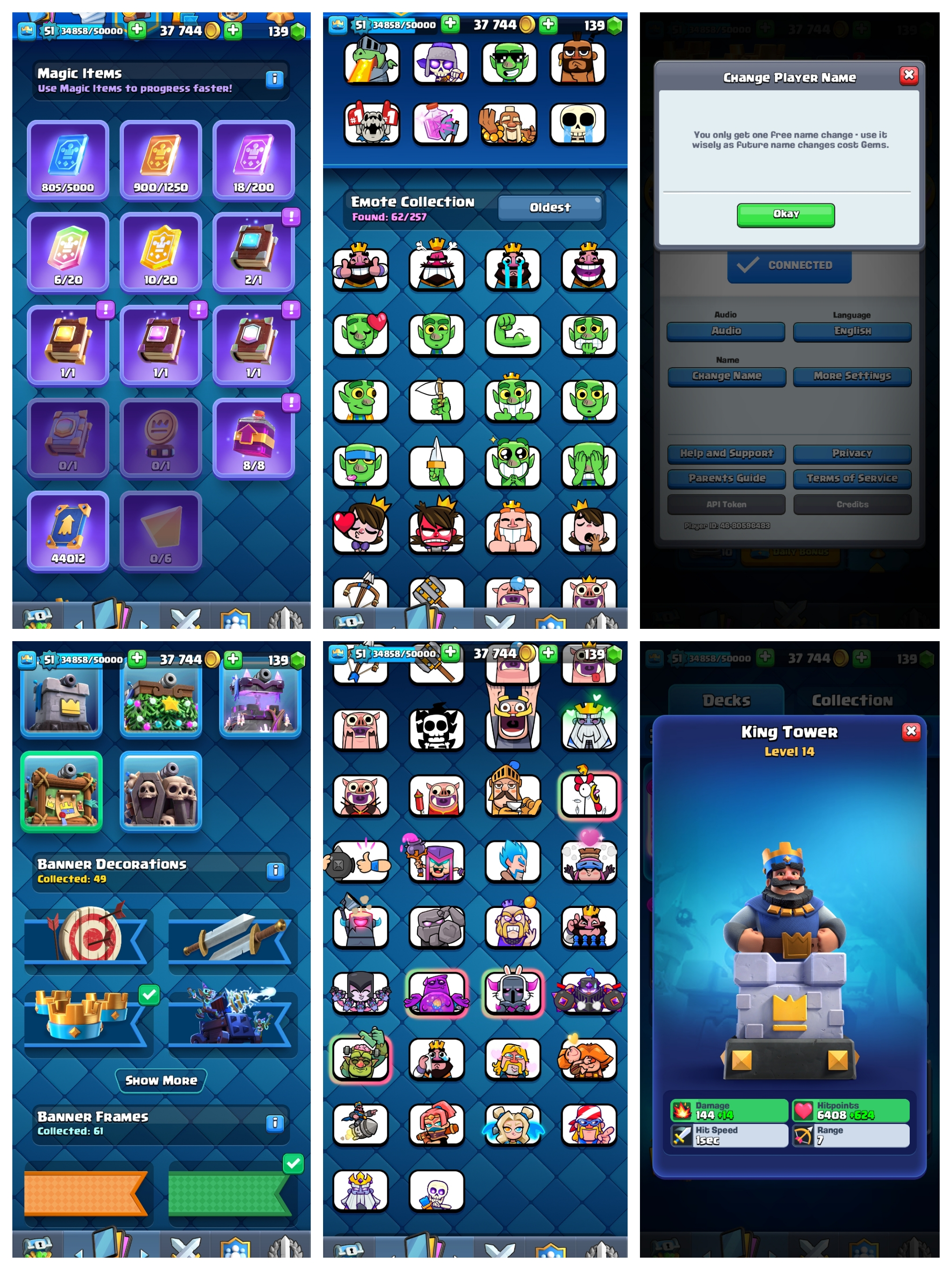 LEVEL 51 [] KT 14 [] 8300 TROPHIES [] 14 MAX CARDS [] 4 ELITES [] 11x EVOLUTION CARD [] 62 EMOTE [] INSTANT DELIVERY