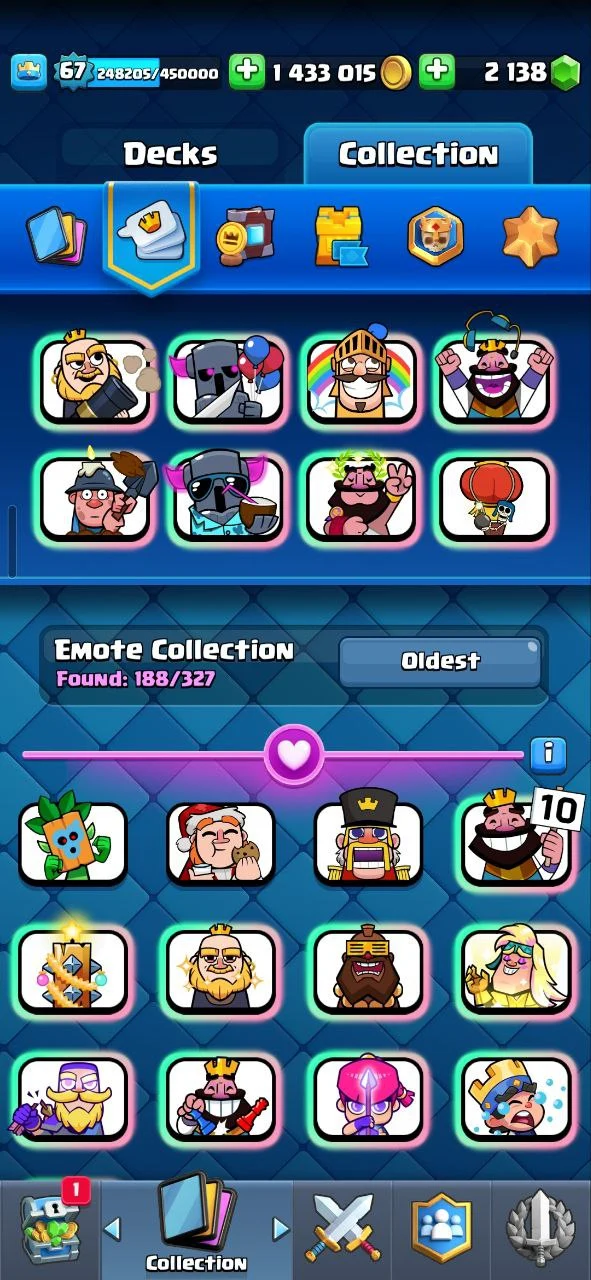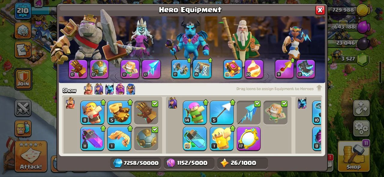 👑 (PREMIUM) 3 in 1 💎 MAXED COC + CR + SB 🔥 CR: RAREST EMOTES 🏅 67 ELITE CARDS ✨️ 67 XP 🎯 20 EVOLUTIONS 😈 RAINBOW PRINCE 🌈 PEKKA BALLOON 🎈 COCONUT PEKKA 🥥 EMPEROR KING 👑 COC: TH 17 ☄️ HIGH HEROES & EPIC EQUIPMENTS 😈 SB: LEVEL 180 SQUAD BUSTERS 🚀