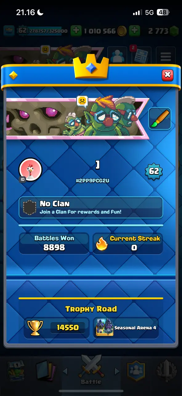 🔥 RAREST 27 EVO 🔥 CR Lv.62 🔥 9 Years Played 🔥 Change Name ON 🔥 Seasonal Arena 4 🔥 14550 Trophies 🔥 KT 15 🔥 27 Evo Cards 🔥 87 Max Cards & 36 Elites 🔥 195 Emotes 🔥 16 Tower Skins 🔥 [F2783] 🔥