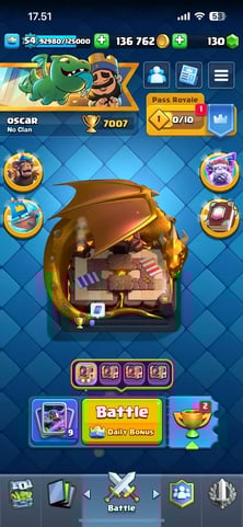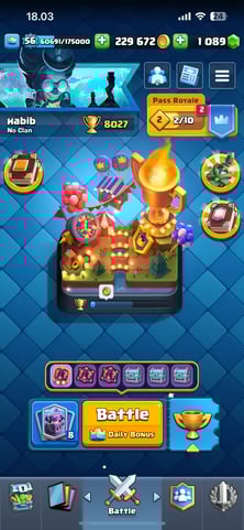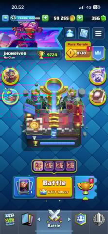 🔥 [RAREST] 🔥 CR Lv.61 🔥Seasonal Arena 5🔥15.060 Trophy🔥KT 15🔥33 Elite & 59 Max Card🔥10 Evo Card🔥114 Emotes🔥10 Tower Skins🔥Available Rename🔥Full Acces & Guaranteed🔥