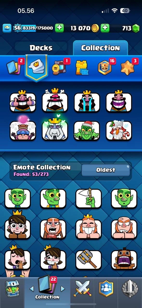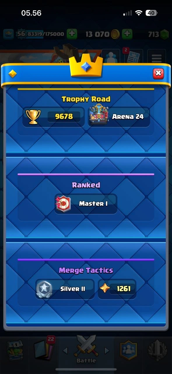 Super Cheap CR XP 56🔥KT15🔥Cn Free🔥10 Elite🔥51 Max Card🔥20 Evo🔥53 Emotes🔥Arena 24🔥5 Skins Tower🔥Acces Full🔥Cheapest and Safe Account