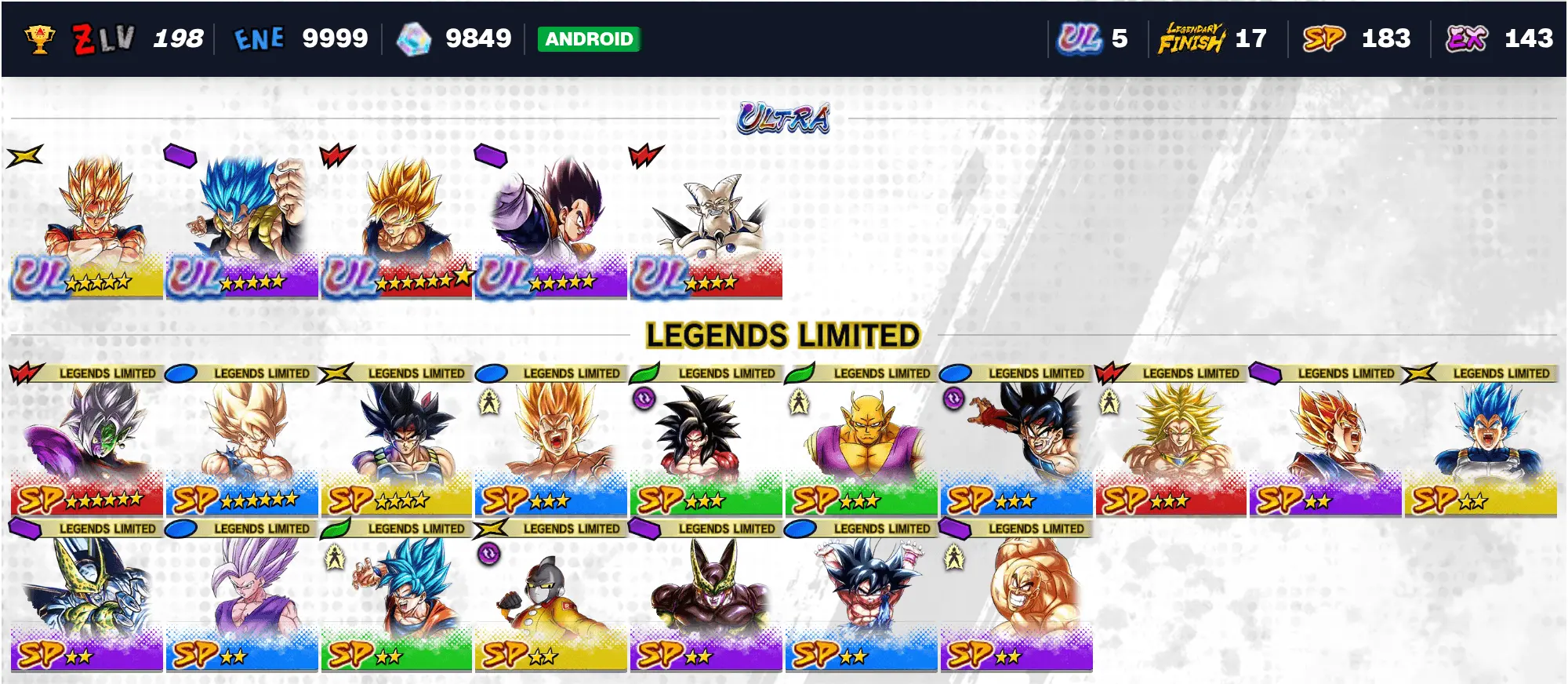 🔥 UL 5 Vegeta | UL 5 SSGSS Gogeta 💎 10119 Chrono Crystals ⭐ 17 LF | 180 SP ⚡ Android DB Legends Account 🎮 DB-IXGMCD