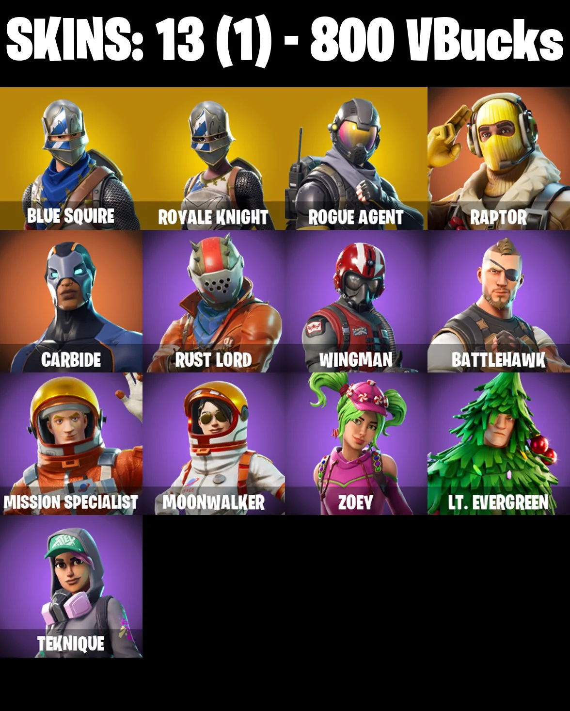 🎆13 SKINS ⚡️PC/XBOX⚡️ BLUE SQUIRE 👑 ROYALE KNIGHT 👑 ROGUE AGENT 👑 RAPTOR 👑 CARBIDE 👑 RUST LORD 👑 WINGMAN 👑 BATTLEHAWK 👑 MISSION SPECIALIST ⚡️ 800 VB #M656