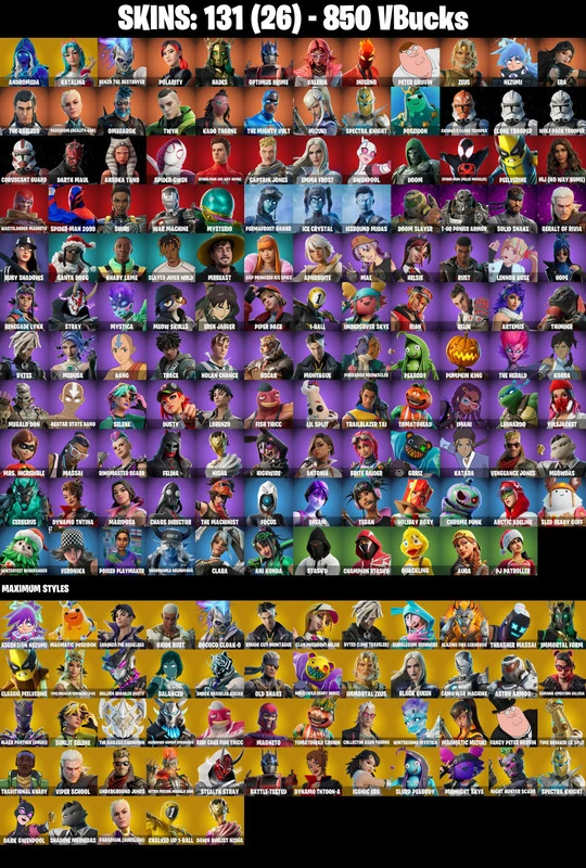 131 SKINS 🔥 ANDROMEDA | KATALINA | RENZO THE DESTROYER | POLARITY | HADES | OPTIMUS PRIME | VALERIA | INFERNO | PETER GRIFFIN | ZEUS | NEZUMI | ERA | THE AGELESS | PARADIGM (REALITY-659) | OMEGAROK | TWYN | KADO THORNE | 850 VB