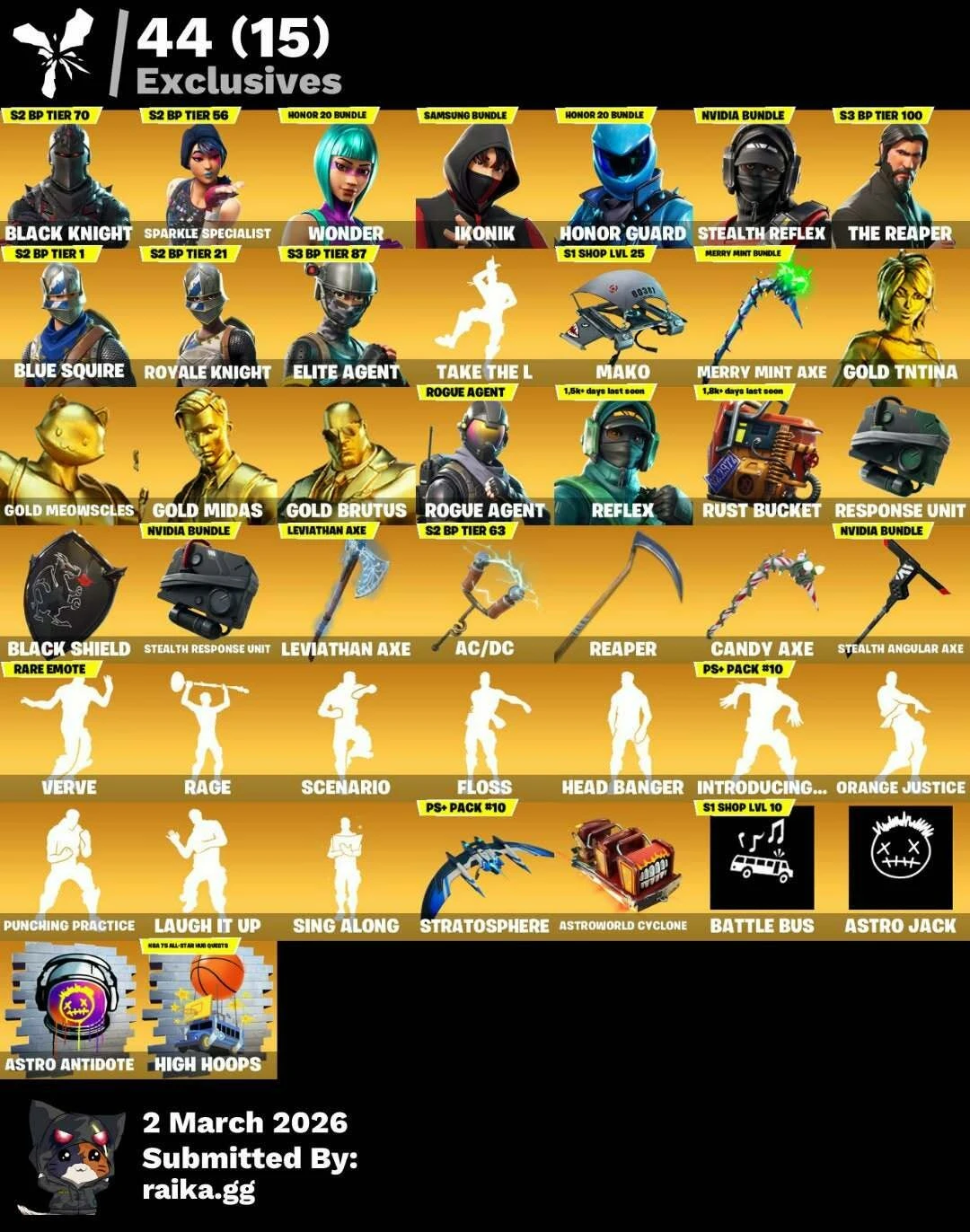 🔥 135 Skins | 120 Pickaxes | 121 Emotes | 108 Gliders | 44 Exclusives | Leviathan Axe | Stealth Reflex | Wonder | Honor Guard | Rarest Items ✅