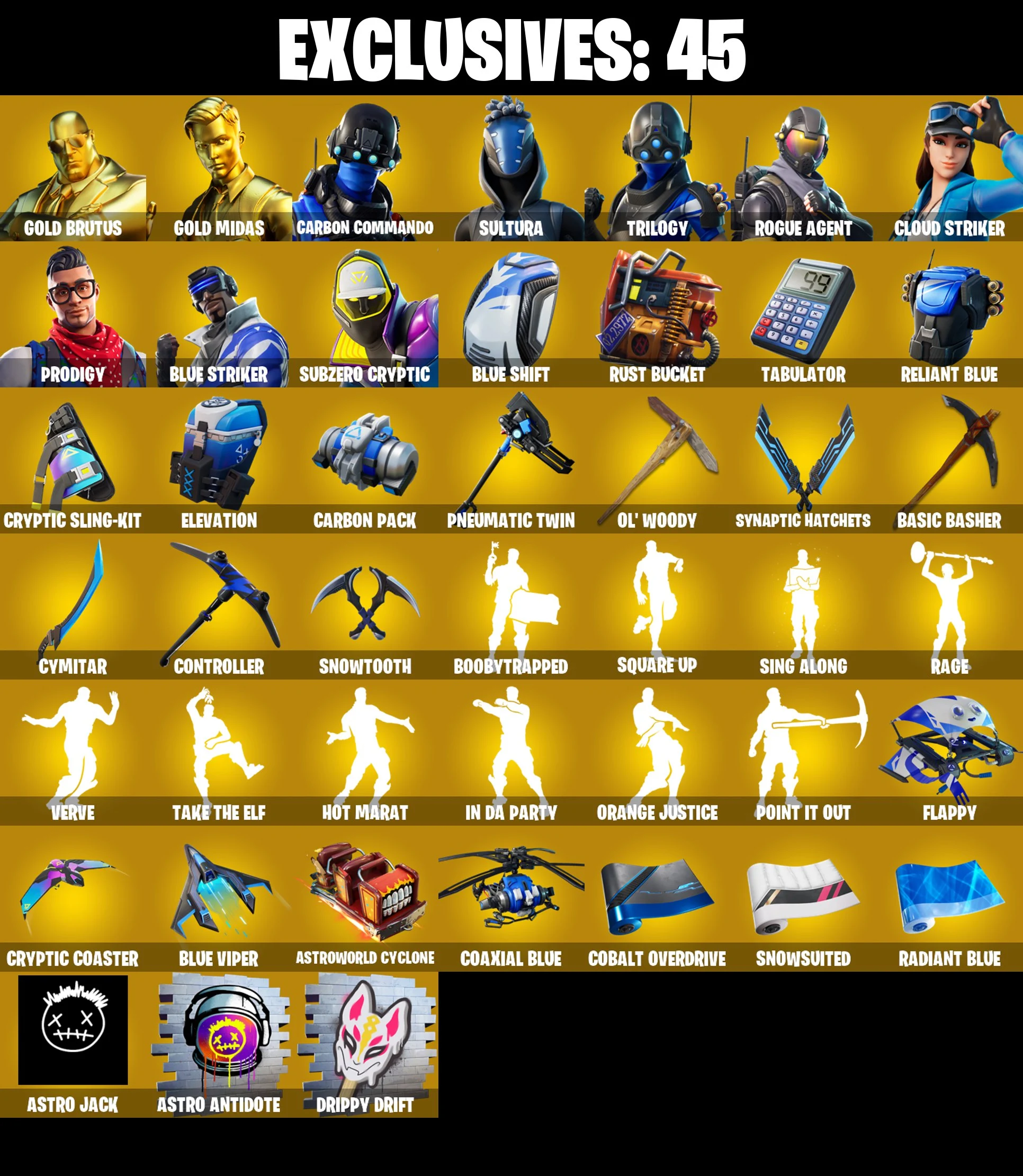 🎆188 SKINS ⚡️PC/XBOX⚡️ GOLD BRUTUS 👑 GOLD MIDAS 👑 CARBON COMMANDO 👑 SULTURA 👑 TRILOGY 👑 ROGUE AGENT 👑 CLOUD STRIKER 👑 PRODIGY 👑 BLUE STRIKER ⚡️ 770 VB #M428