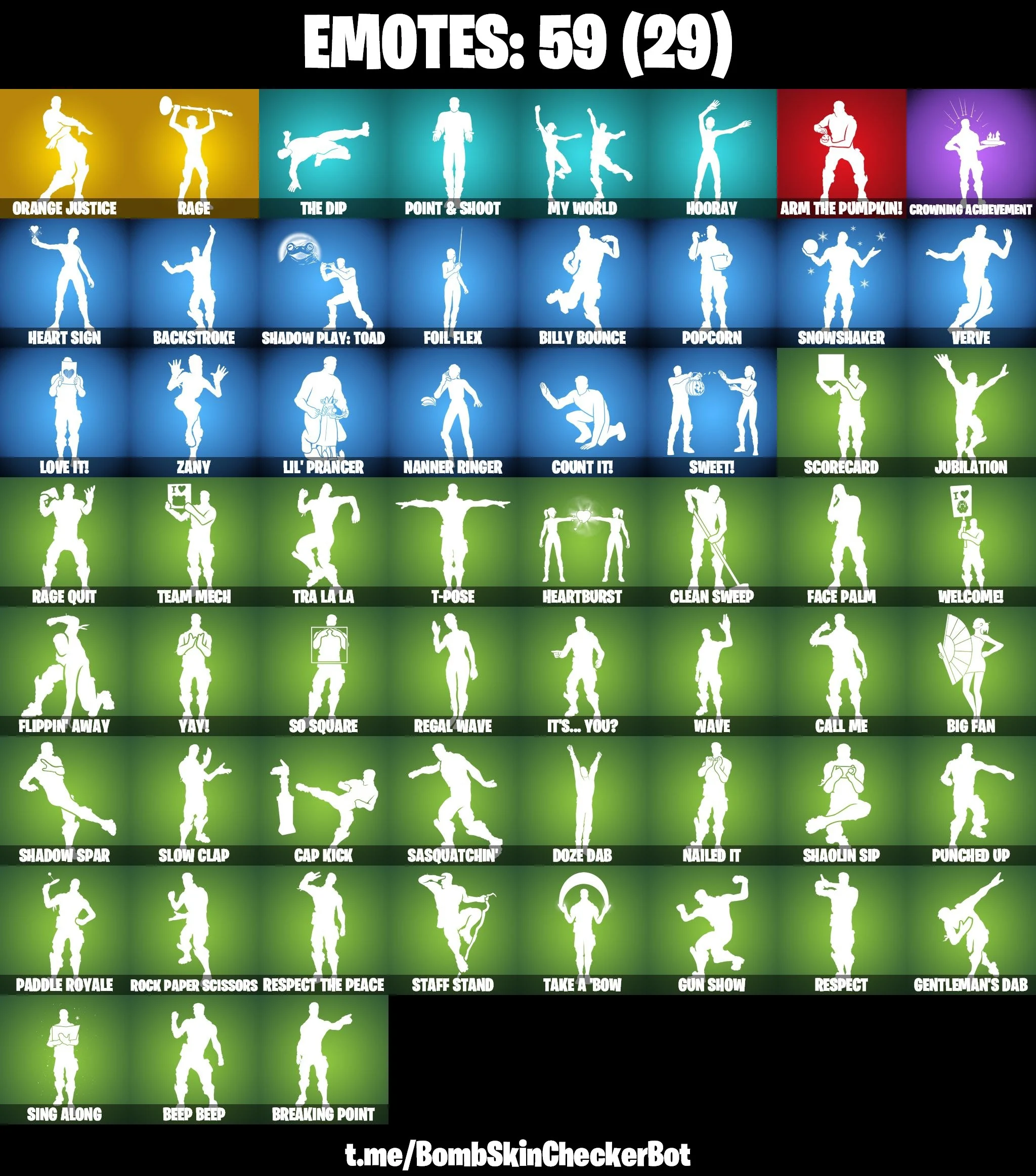 🔮27 Skins🔮 Rage💎Surf Witch💎Blue Team Leader💎Blue Striker💎Star Wand💎Orange Justice💎Aura💎Red Knight💎Birdy💎Arctic Adeline💎Sled Ready Guff💎Holiday Boxy💎Winterfest Bushranger