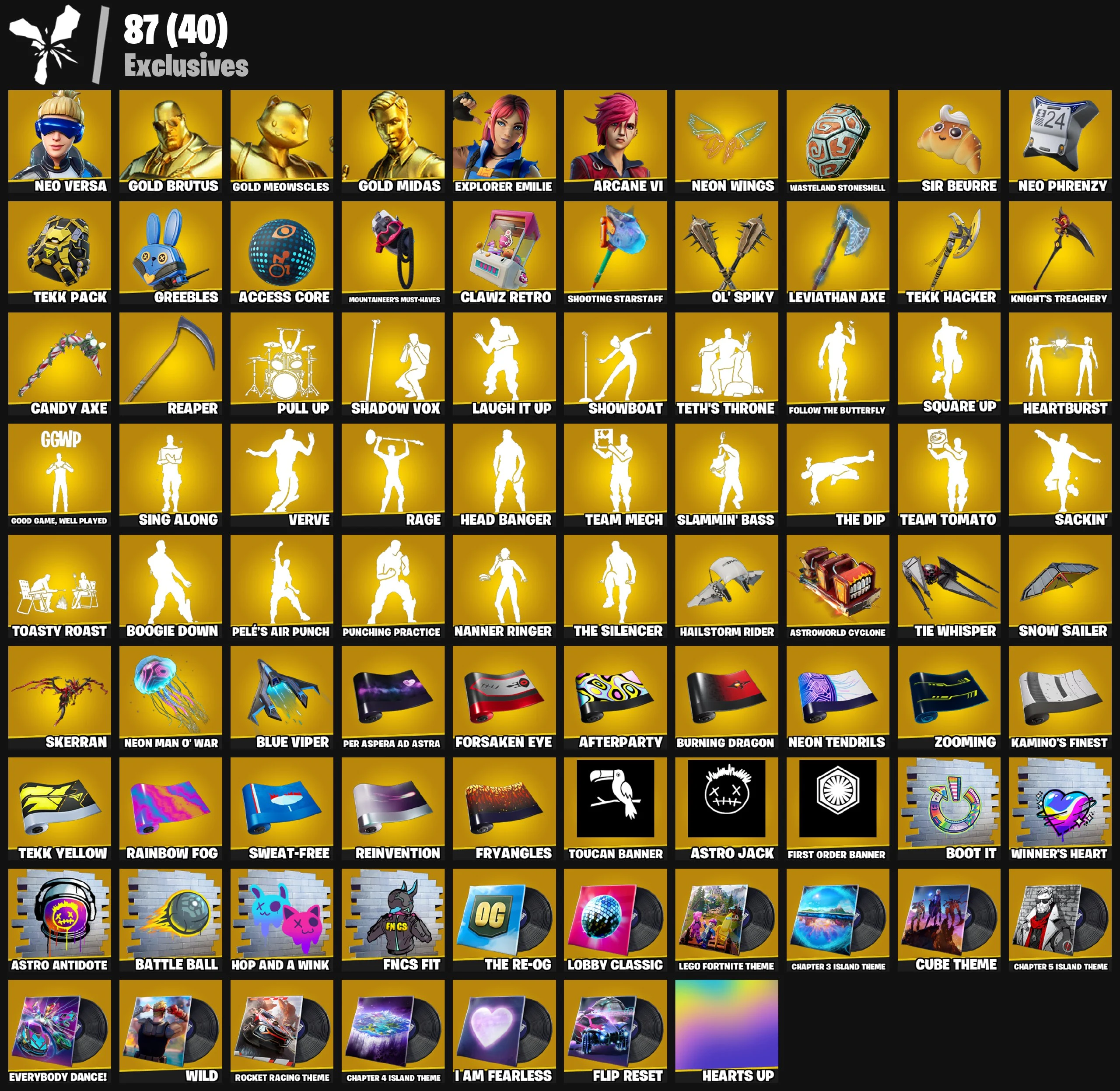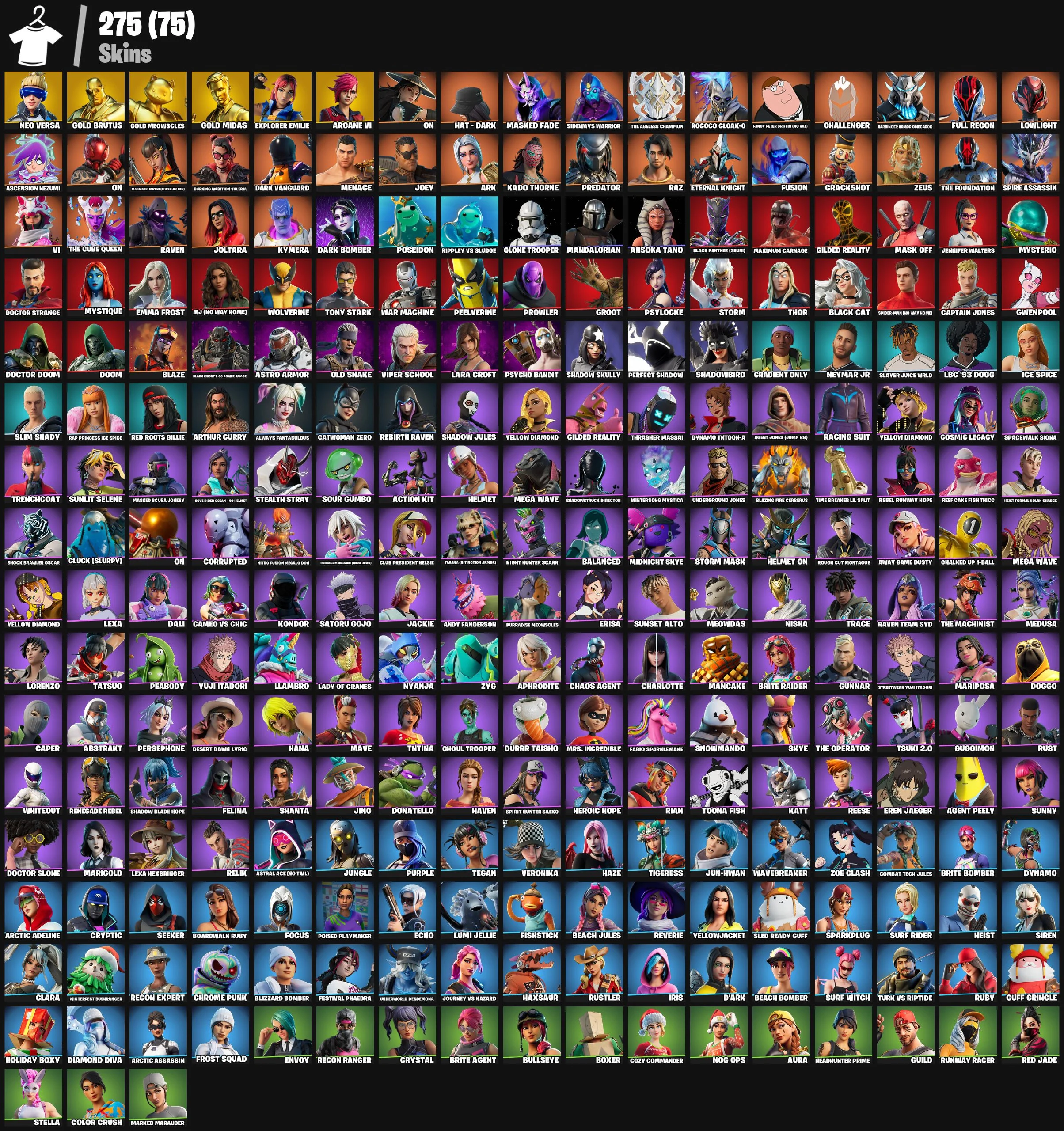 💜 [ 275 ] SKINS | NEO VERSA | GOLD BRUTUS | GOLD MEOWSCLES | GOLD MIDAS | EXPLORER EMILIE | ARCANE VI | ON | HAT ⸱ DARK | MASKED FADE | 200 VB