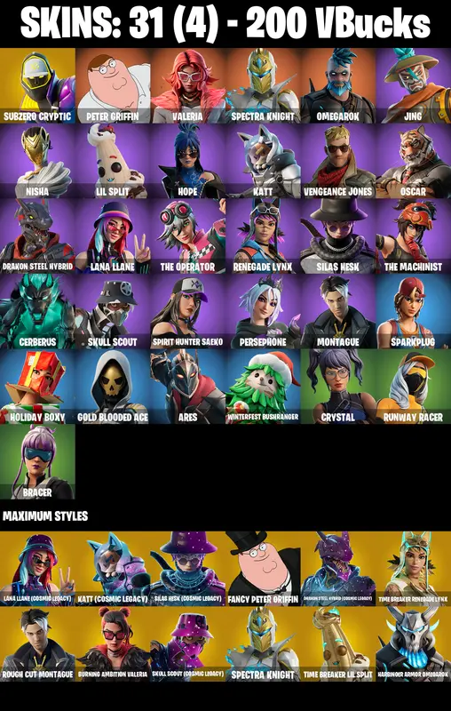 31 SKINS 🔥 Get Griddy | Hope | Subzero Cryptic | Peter Griffin | Valeria | Spectra Knight | Omegarok | Jing | Nisha | Lil Split | Katt | Vengeance Jones | Oscar | Drakon Steel Hybrid | Lana Llane | The Operator | Renegade Lynx