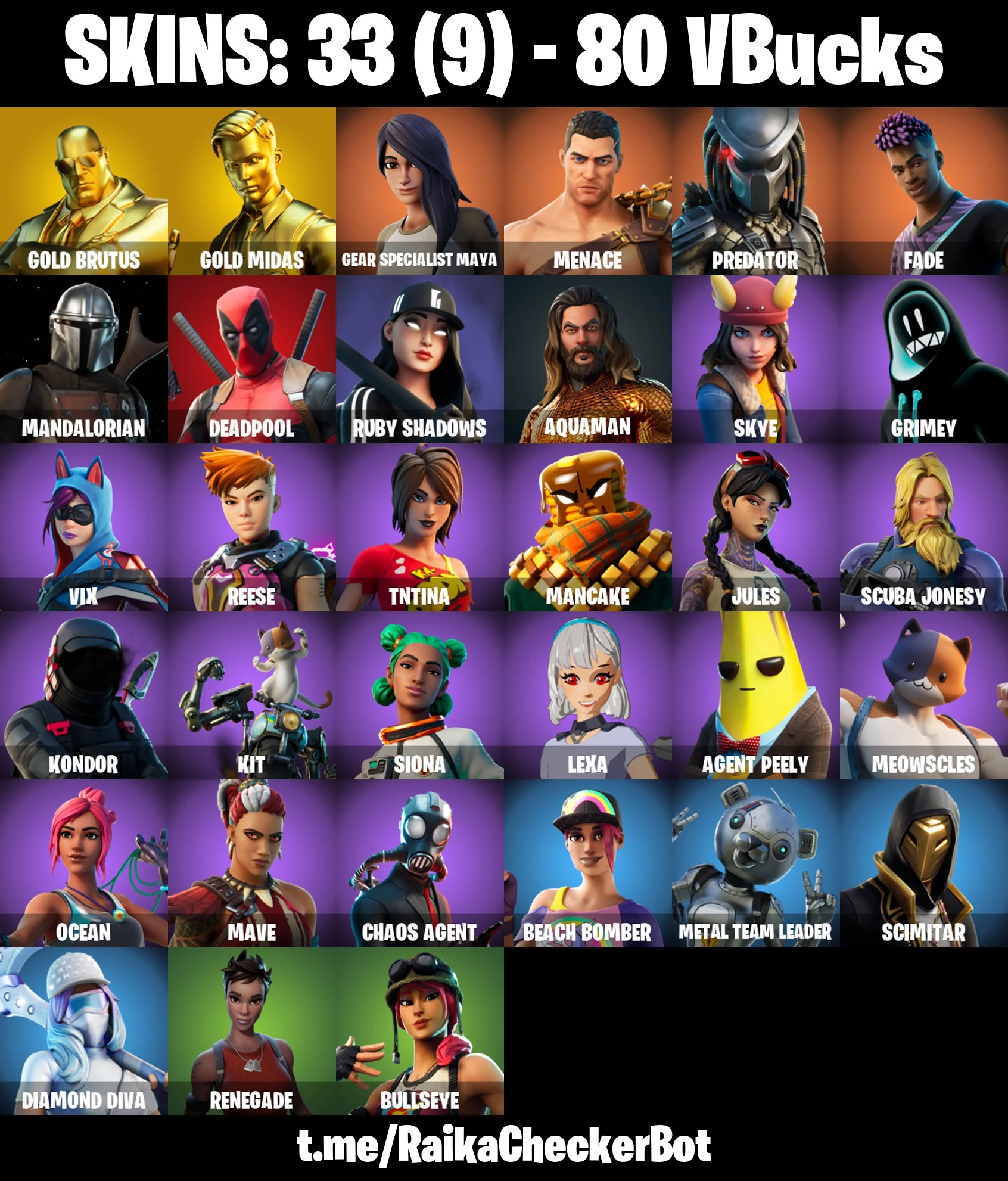 !SALE! 33 SKINS | Renegade | Gold Midas | Rage | Mandalorian | Chaos Agent | TNTina | Beach Bomber | [PC/PSN/XBOX] | 80 VB