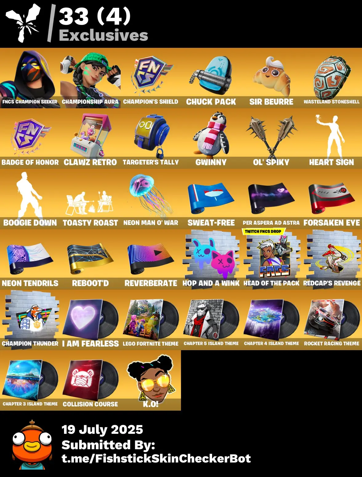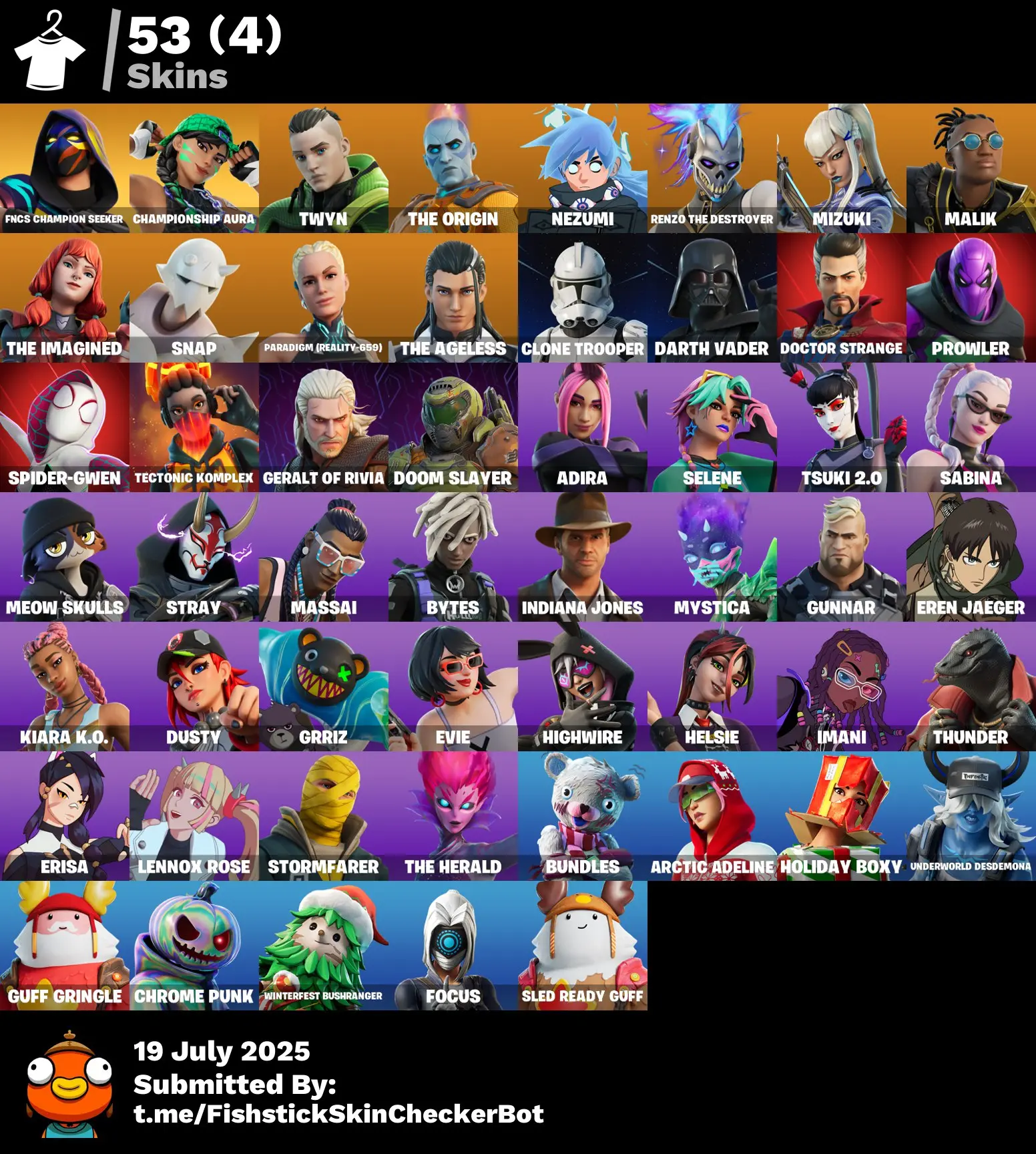 🦅 53 Skins [PC/PSN/XBOX] 🏆 FNCS Champion Seeker 💎 Championship Aura 🌪️ Twyn 🔥 The Origin 🌙 Nezumi 💥 Renzo the Destroyer 🪄 FTN116
