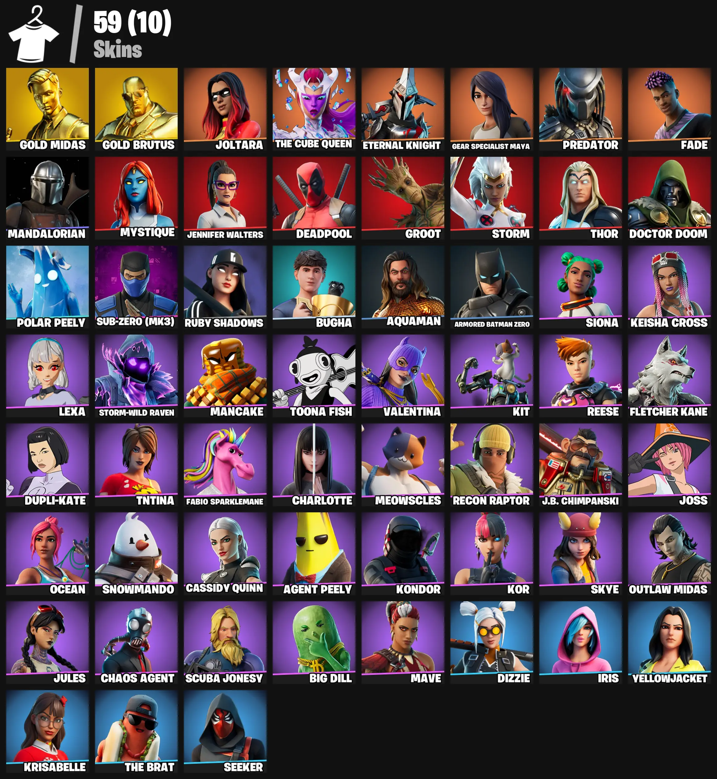 【59 SKINS】 (PC) JOLTARA | CHAOS AGENT | DEADPOOL | IRIS | GOLD MIDAS | GOLD BRUTUS | THE CUBE QUEEN | ETERNAL KNIGHT