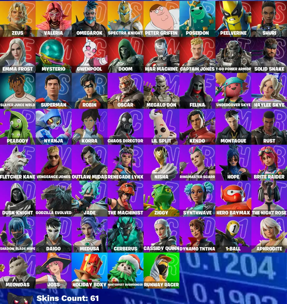 ⚡ 61 Skins | Zeus | Spectra Knight | Peter Griffin | Shuri | Mysterio | Valeria | Peelverine | Full Access ⚡