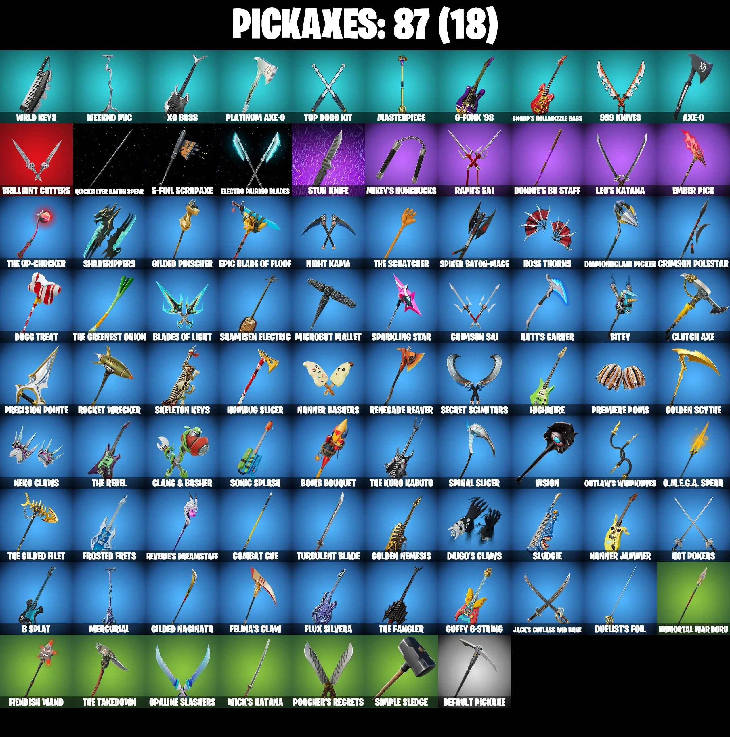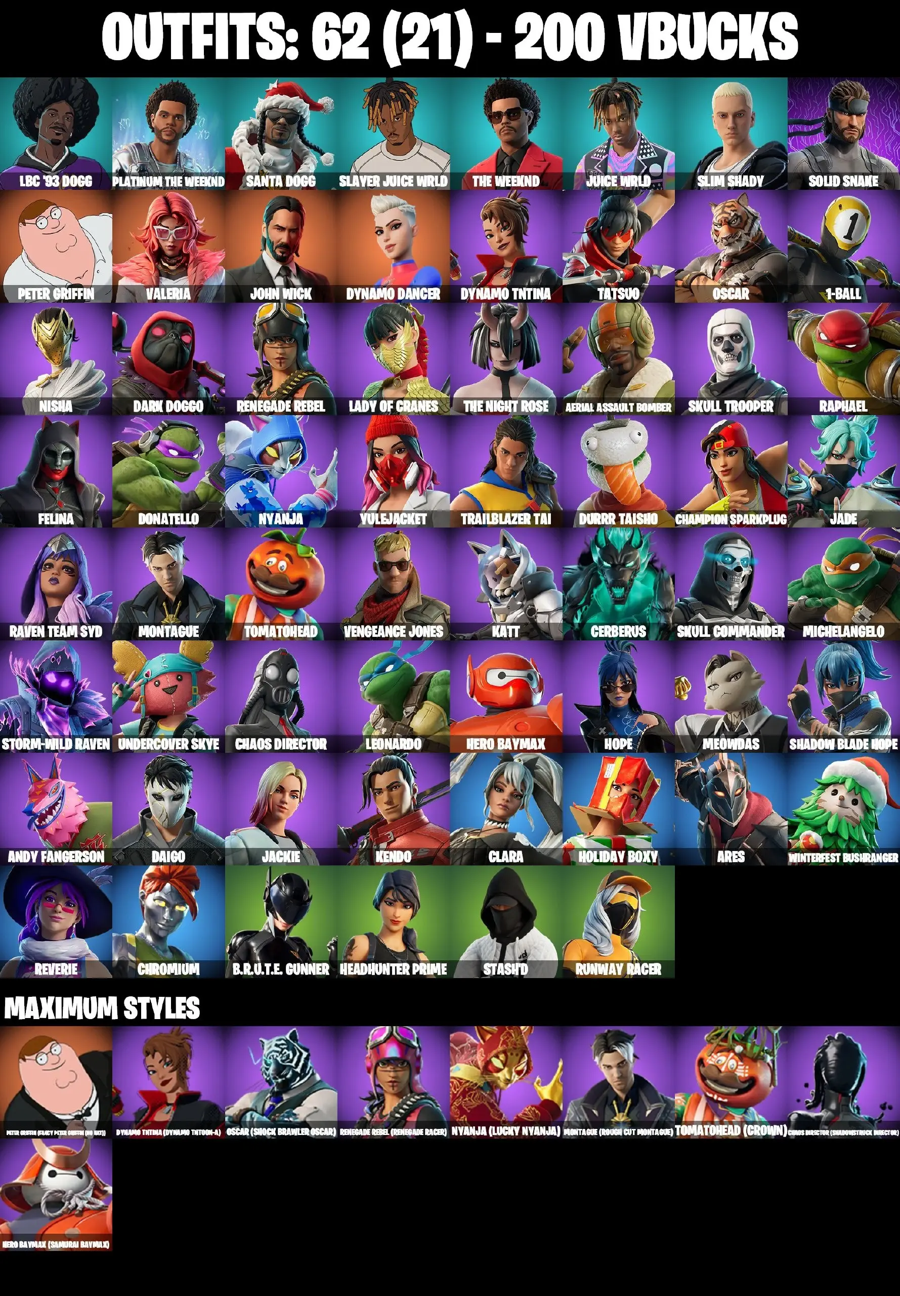 62 SKINS | DYNAMO DANCER | SKULL TROOPER | SLIM SHADY | JUICE WRLD | GET GRIDDY | JOHN WICK | REVERIE | CHAOS DIRECTOR MAX | ARES | KATT | DURRR TAISHO | DONATELLO | RAPHAEL | LEONARDO | MICHELANGELO | CAN PLAY ON PSN,XBOX,PC,NINT