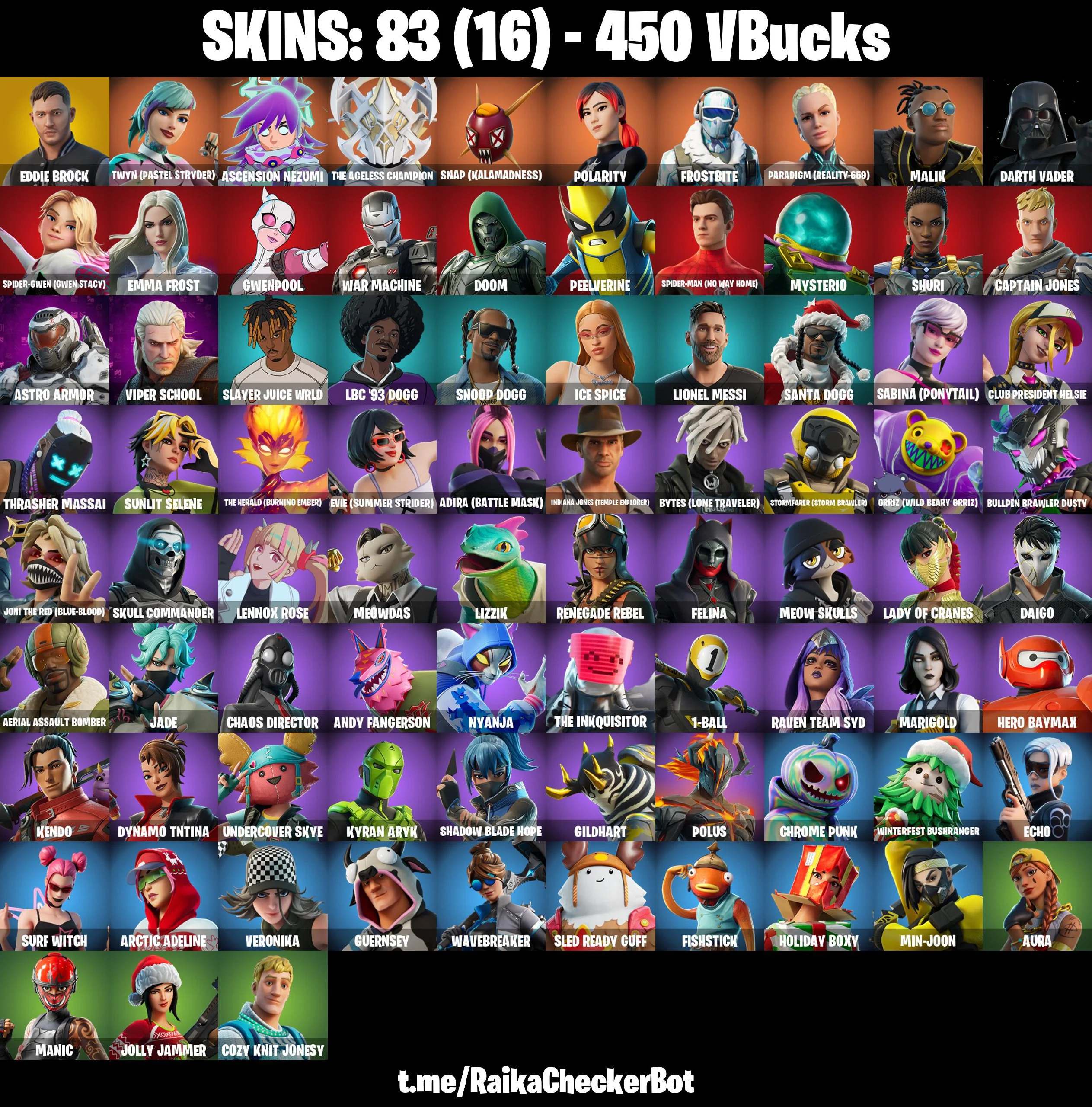 83 SKINS | Darth Vader | Aura | Surf Witch | Polarity | Echo | Manic | Veronika | Jolly Jammer | Fishstick | [PC/PSN/XBOX] | 450 VB