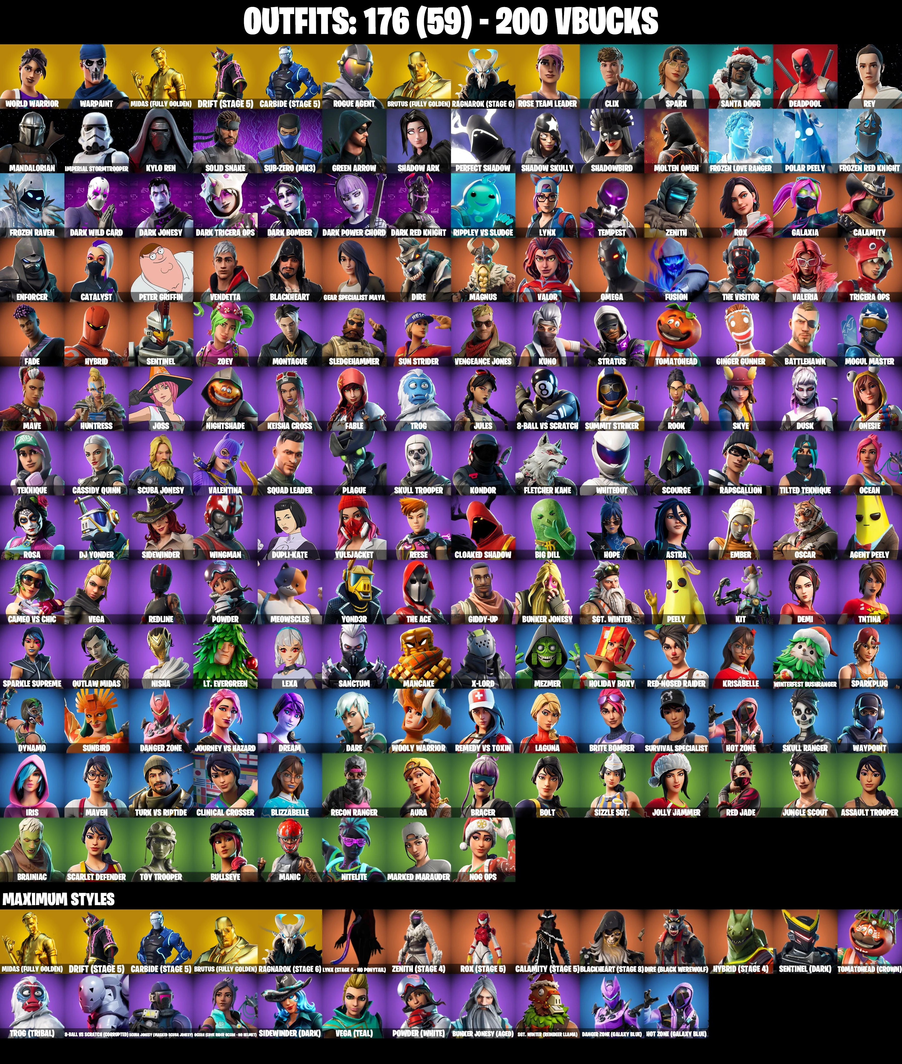 EMAIL CHANGEABLE ✅ [ALL PLATFORMS] ⚡ 176 SKINS 💎 MERRY MINTY PICKAXE 💜 LEVIATHAN AXE 💜 HOT MARAT 💜 OG STW 💜 GOLD MIDAS 💜 LAUGH IT UP 💜 TAKE THE ELF 💜 IRIS