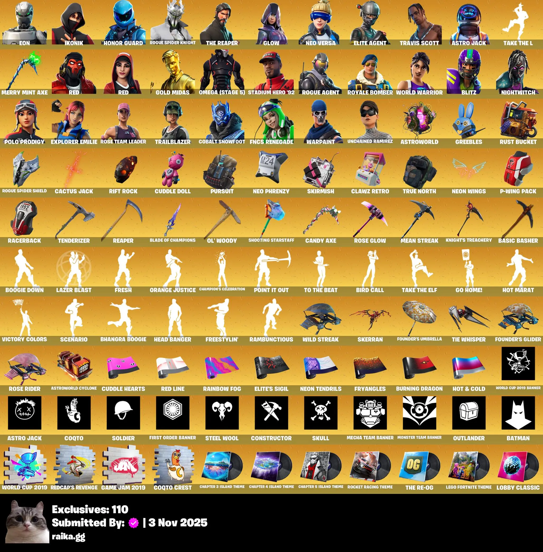 [PC] 523 skins 427 emotes | OG STW | Eon | IKONIK | Honor Guard | Rogue Spider Knight | The Reaper | Glow | Travis Scott | Merry Mint Axe | Royal Bomber