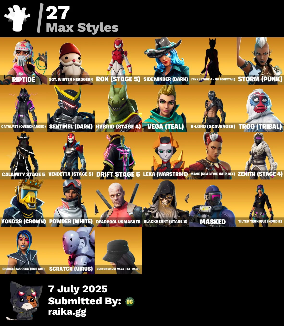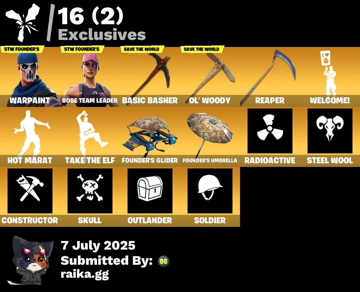 [PC] 91 skins ✨ OG STW 🔥 Ultima Knight 🛡️ Fusion 💠 Kymera 👽 Lynx 🐾 Hybrid 🐉 Drift 🌌 Catalyst ⚡ Sentinel 🤖 Midas 🪙 The Scientist 🧪 Blackheart 🏴☠️ Zenith 🏔️ 300 VB 💎