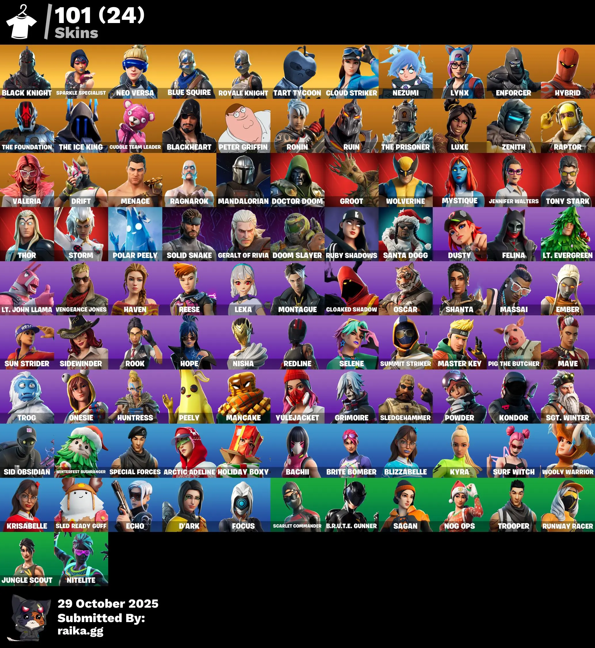 [PC | PSN | XBOX] 101 skins | Black Knight | Sparkle Specialist | Floss | Leviathan Axe | New Save The World: ✅ | Neo Versa | Blue Squire | Royale Knight | Tart Tycoon | Cloud Striker | Nezumi | Lynx | 600 VB