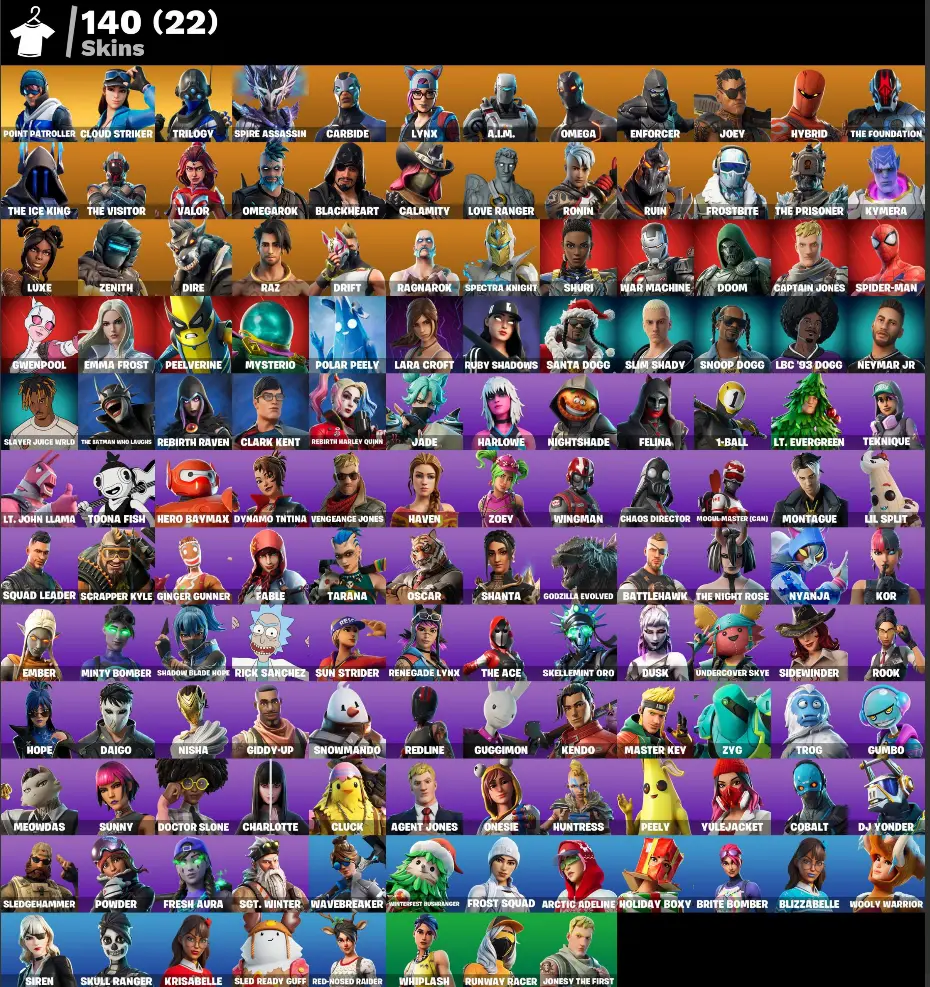 (PC PSN XBOX) 140 skins | LARA CROFT / REBIRTH HARLEY QUINN / CANDY AXE / REAPER /  Point Patroller | Cloud Striker | Trilogy | Spire Assassin | Carbide | Lynx | A.I.M. | Omega | Enforcer | Joey | Hybrid | 700 VB