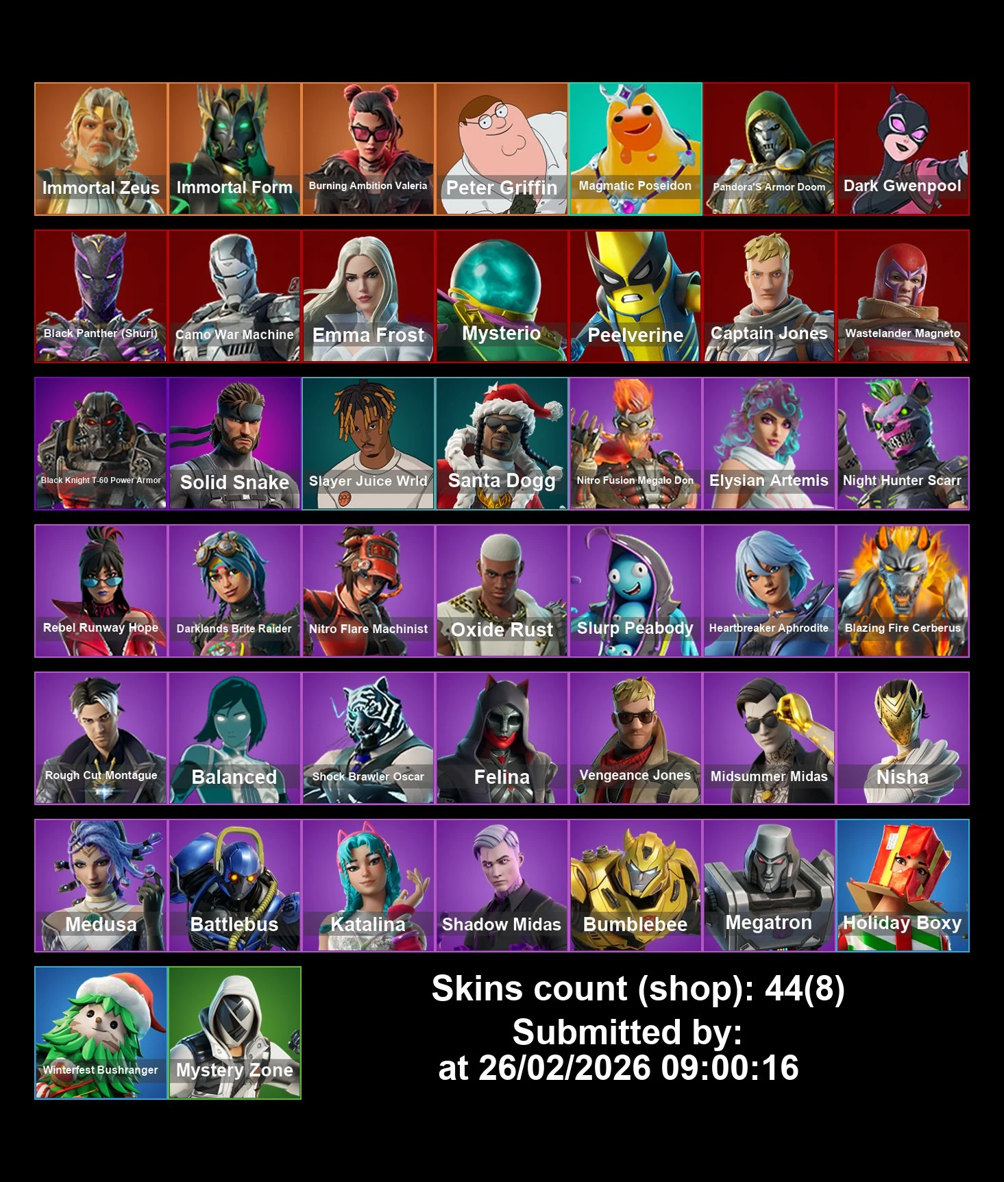 🎮 (PC PSN XBOX) 🌈 45 Skins ☠️ Immortal Zeus ✨ Shadow Midas 🩻 Mystery Zone 🌟 Bumblebee ❤️🔥 Megatron ⭐ Battlebus 🪭 Nisha 👑 Oxide Rust 🐉 Slurp Peabody 💖 Medusa 🌸 Balanced 🔐 Full Email Access