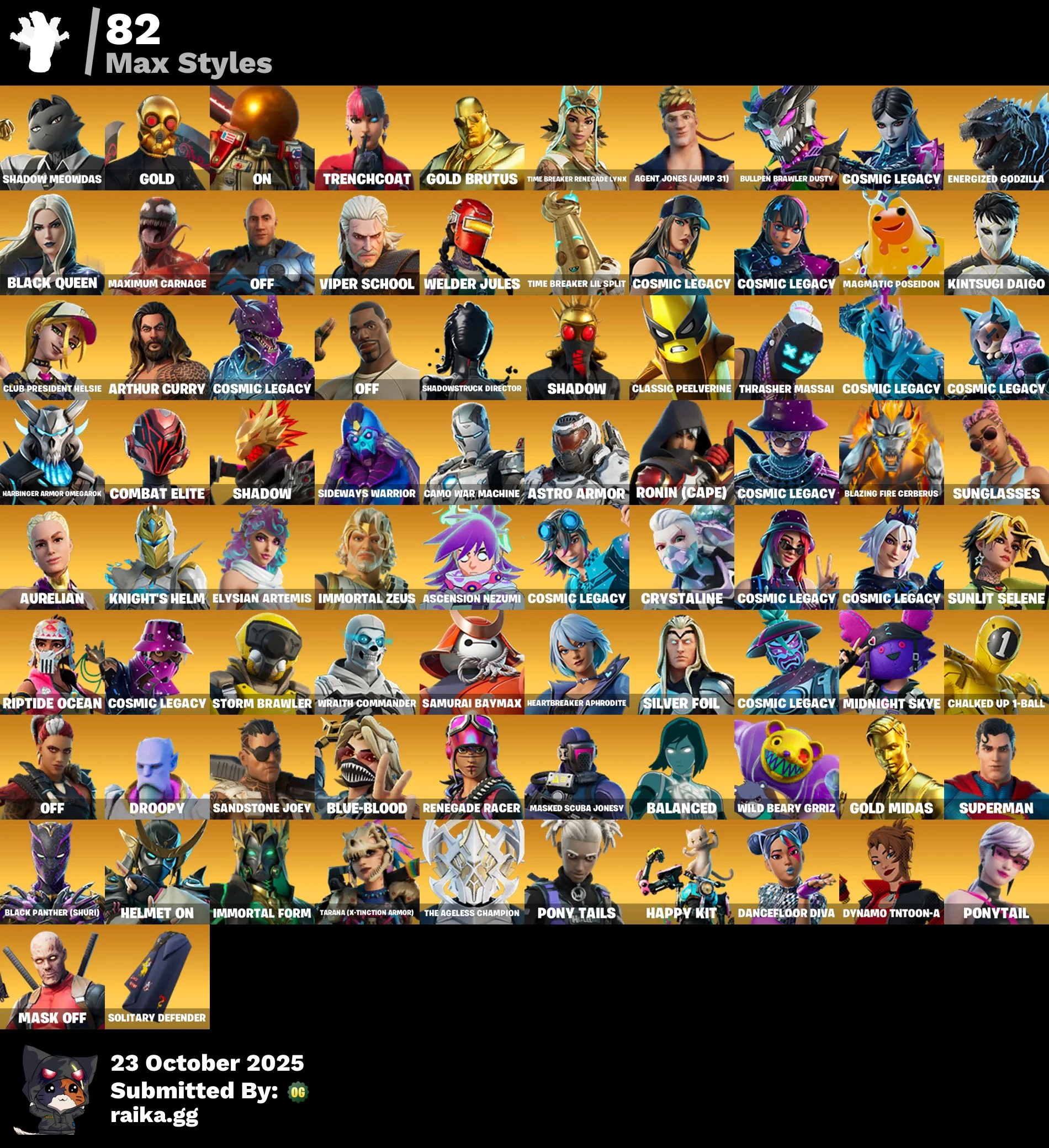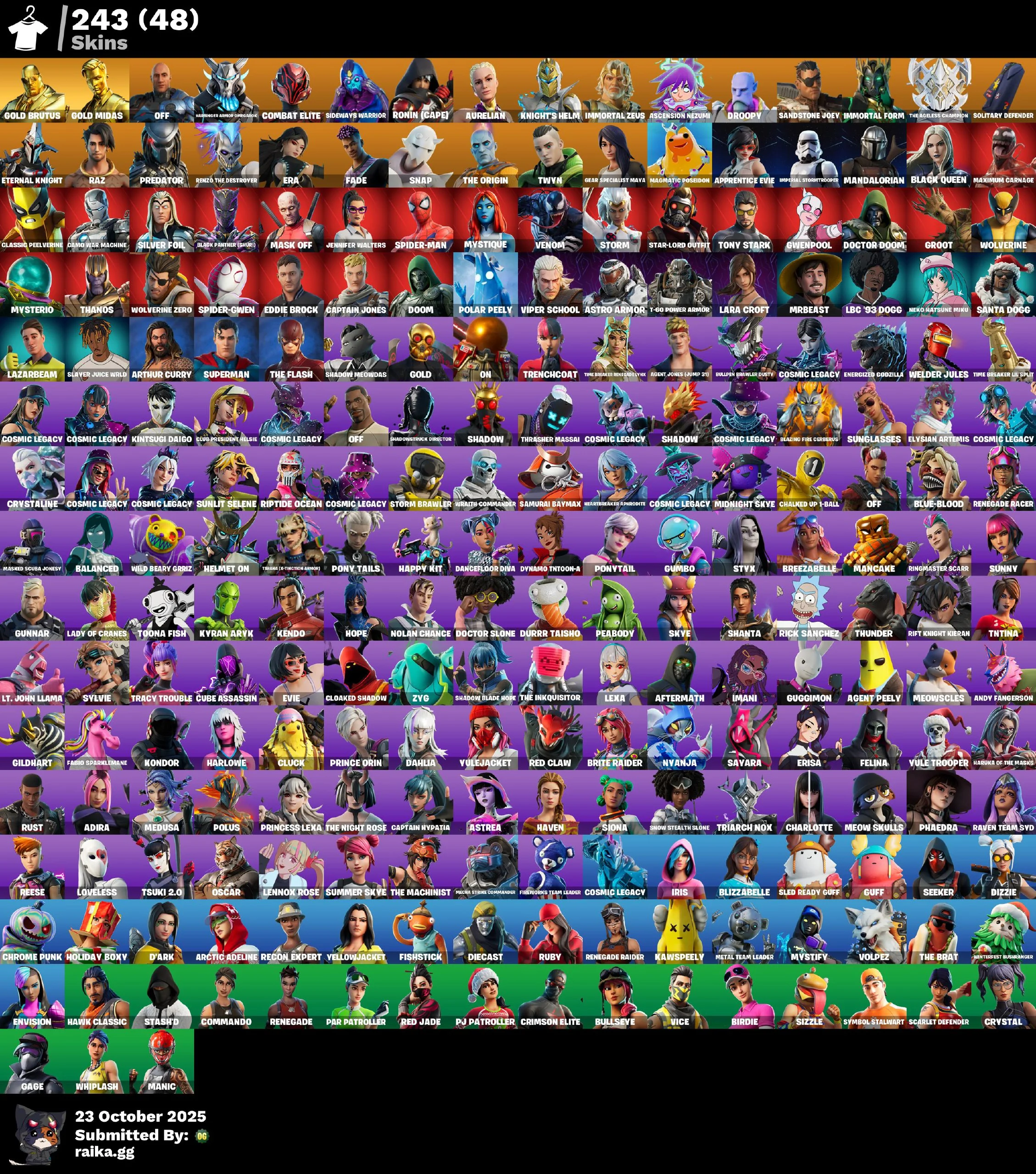 [PC/PSN] 243 skins | Lara Croft | Tony Stark | Mystique | Mandalorian | Get Griddy | Thanos | MrBeast mssh836
