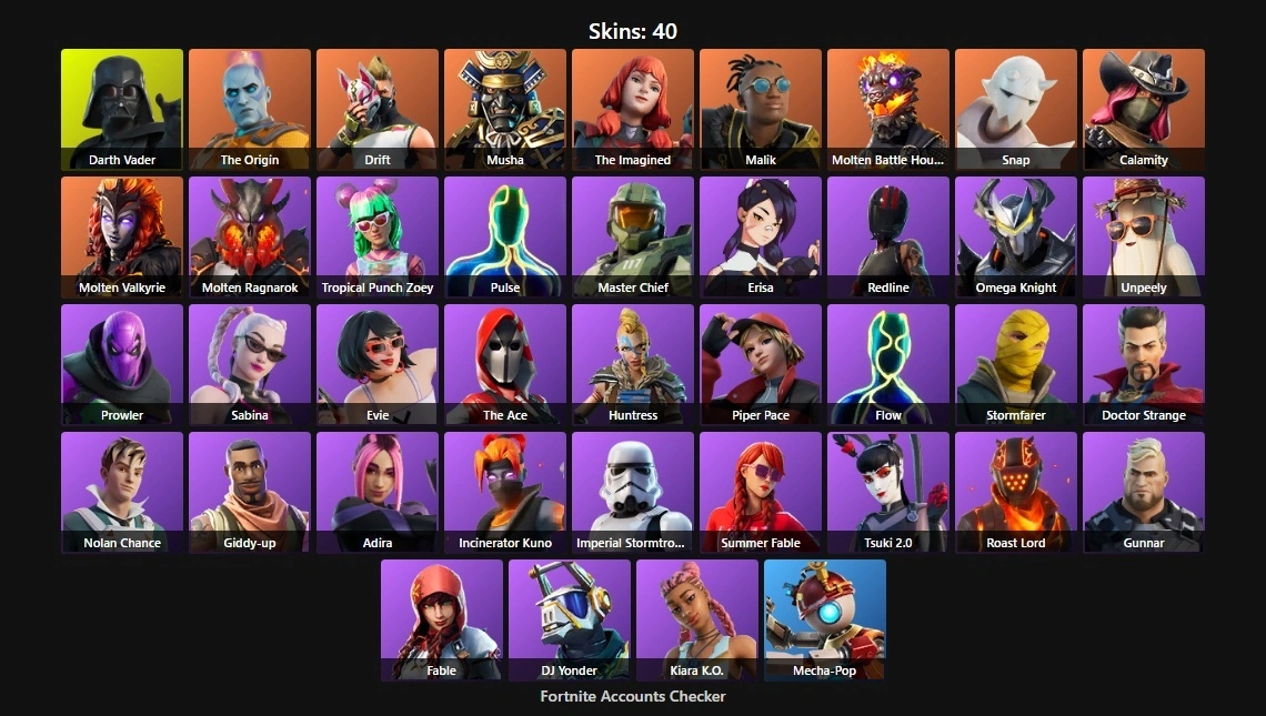 PC/PSN 40 Skins⚡ | Darth Vader | The Origin | Drift | Musha | The Imagined | Malik | Molten Battle Hound | Snap | Calamity | Molten Valkyrie