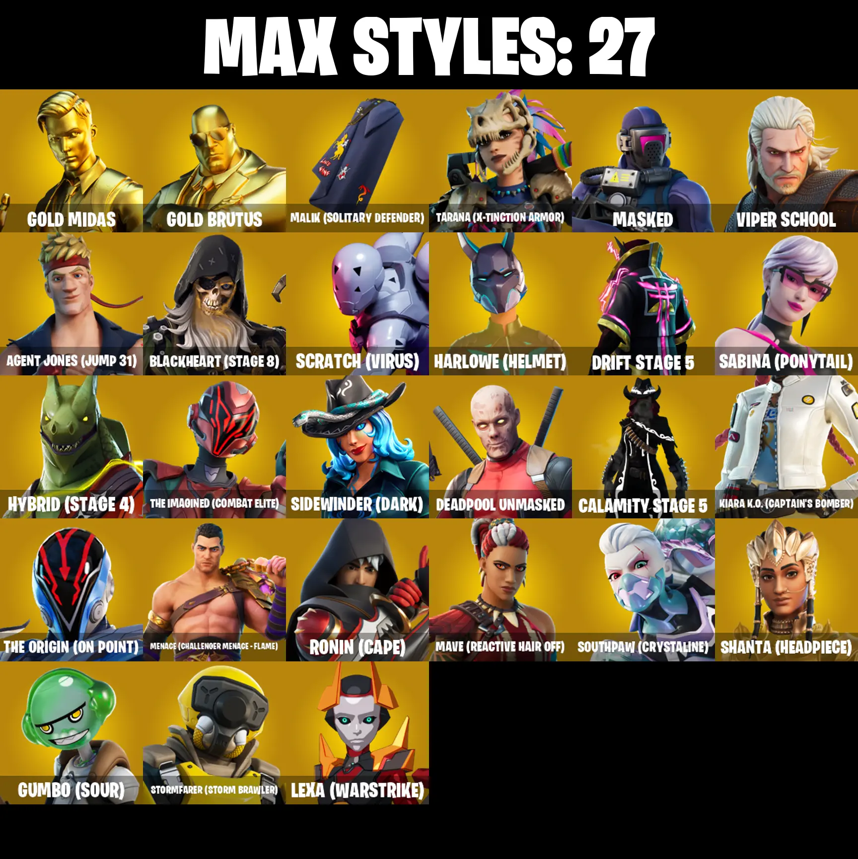 PC/PSN/XBOX ♨️112 skins ✨ Lara Croft ✨ Deadpool ✨ Gold Midas ✨ Gold Brutus ✨ The Reaper ✨ Elite Agent ✨ Omega ✨ Take The L ✨ Mako ✨ #B853