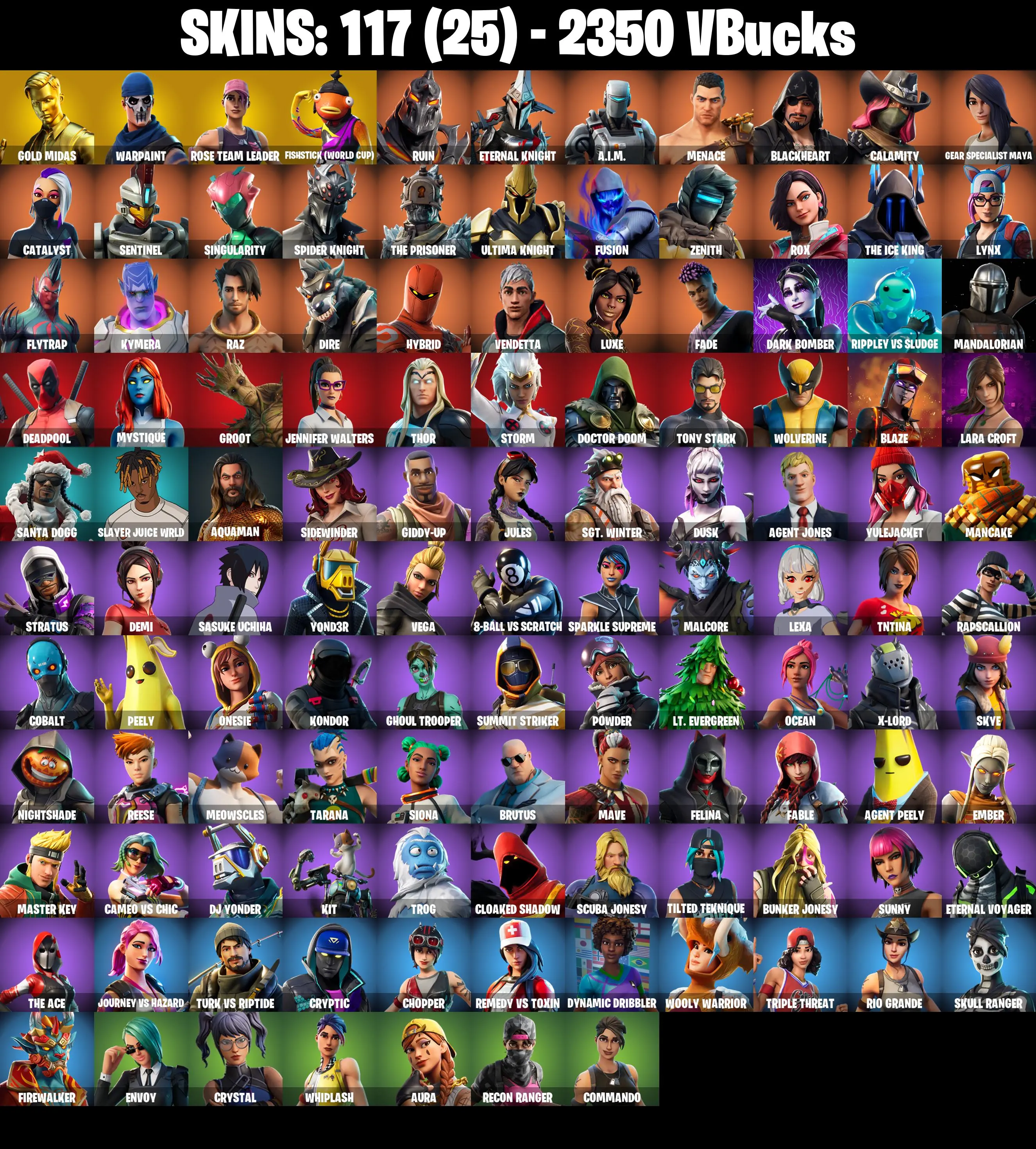 PC/PSN/XBOX ♨️117 skins ✨ OG STW ✨ Lara Croft ✨ Deadpool ✨ Gold Midas ✨ Reaper ✨ Dire ✨ The Ice King ✨ Luxe ✨ Peely ✨ Vendetta ✨ Ultima Knight ✨ #B846