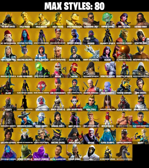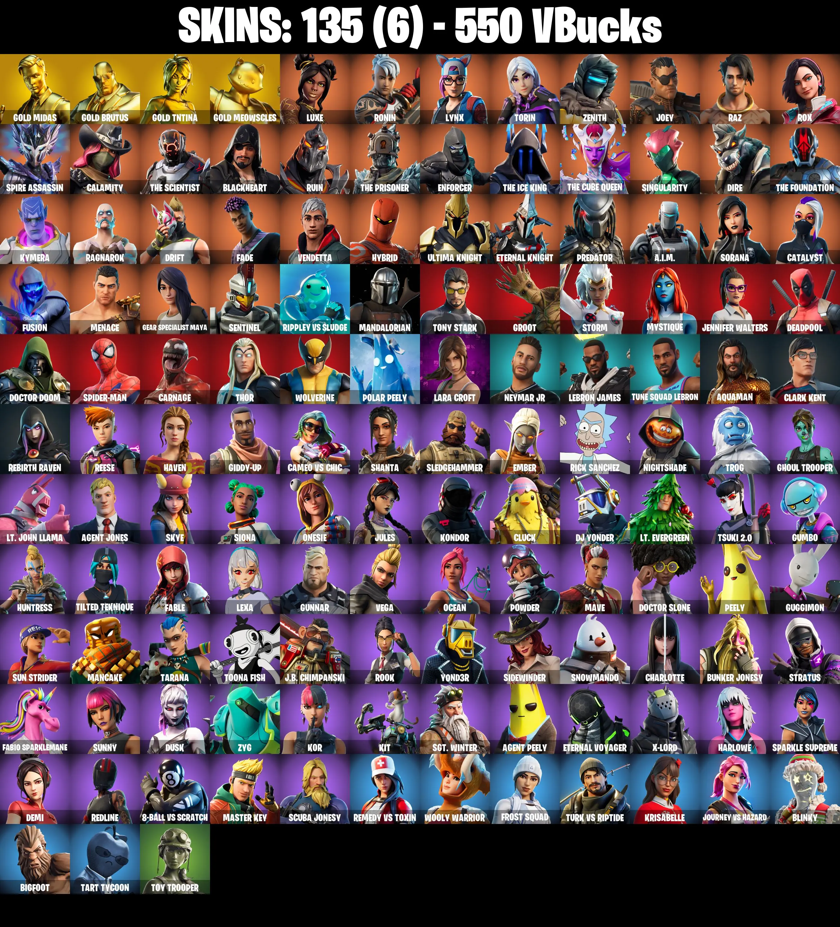 PC/PSN/XBOX ♨️135 skins ✨ Lara Croft ✨ Deadpool ✨ Gold Midas ✨ Gold Brutus ✨ Gold TNTina ✨ Gold Meowscles ✨ Orange Justice ✨ Drift ✨ #B739