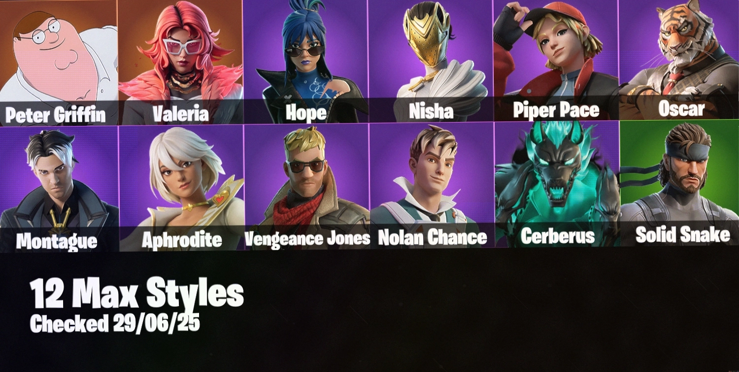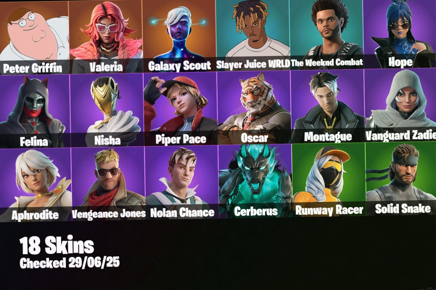 [PC/PSN/XBOX] 18 Skins+Runway Racer+Slayer Juice WRLD+Hope+Felina+Nisha+Piper Pace+Peter Griffin+Solid Snake+500 VB ⸱ PARENTAL CONTROL #ACC-168894