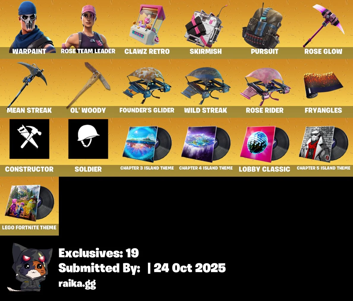 [PC/PSN/XBOX] 2 skins | OG STW | Clawz Retro | Skirmish | Pursuit | Rose Glow | Mean Streak | Ol' Woody | Ride The Pony | Founder's Glider | Wild Stre