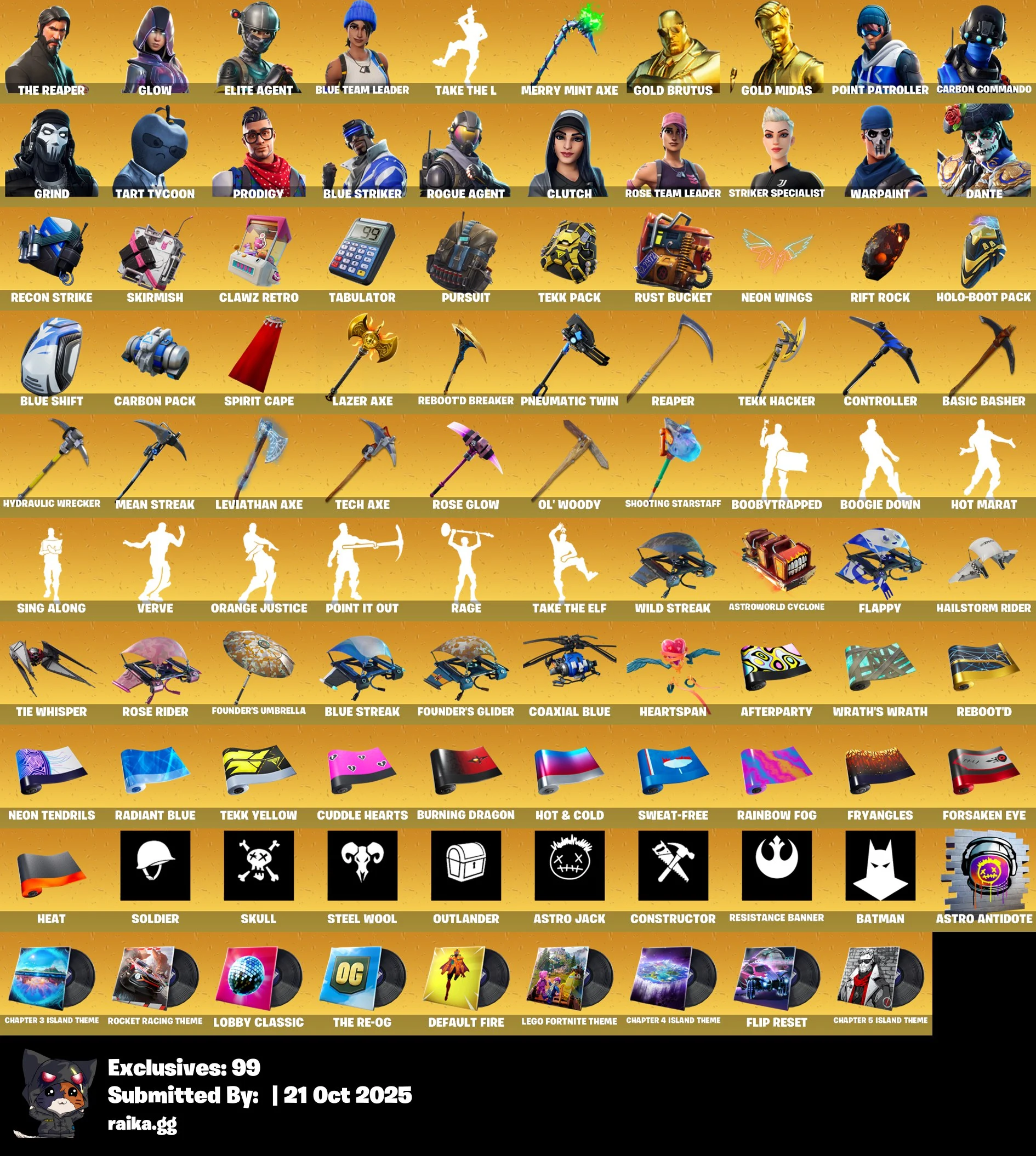 [PC/PSN/XBOX] 211 skins | OG STW | The Reaper | Merry Mint Axe | Glow | Elite Agent | Blue Team Leader | Gold Brutus | Gold Midas | Point Patroller | Carbon Commando |