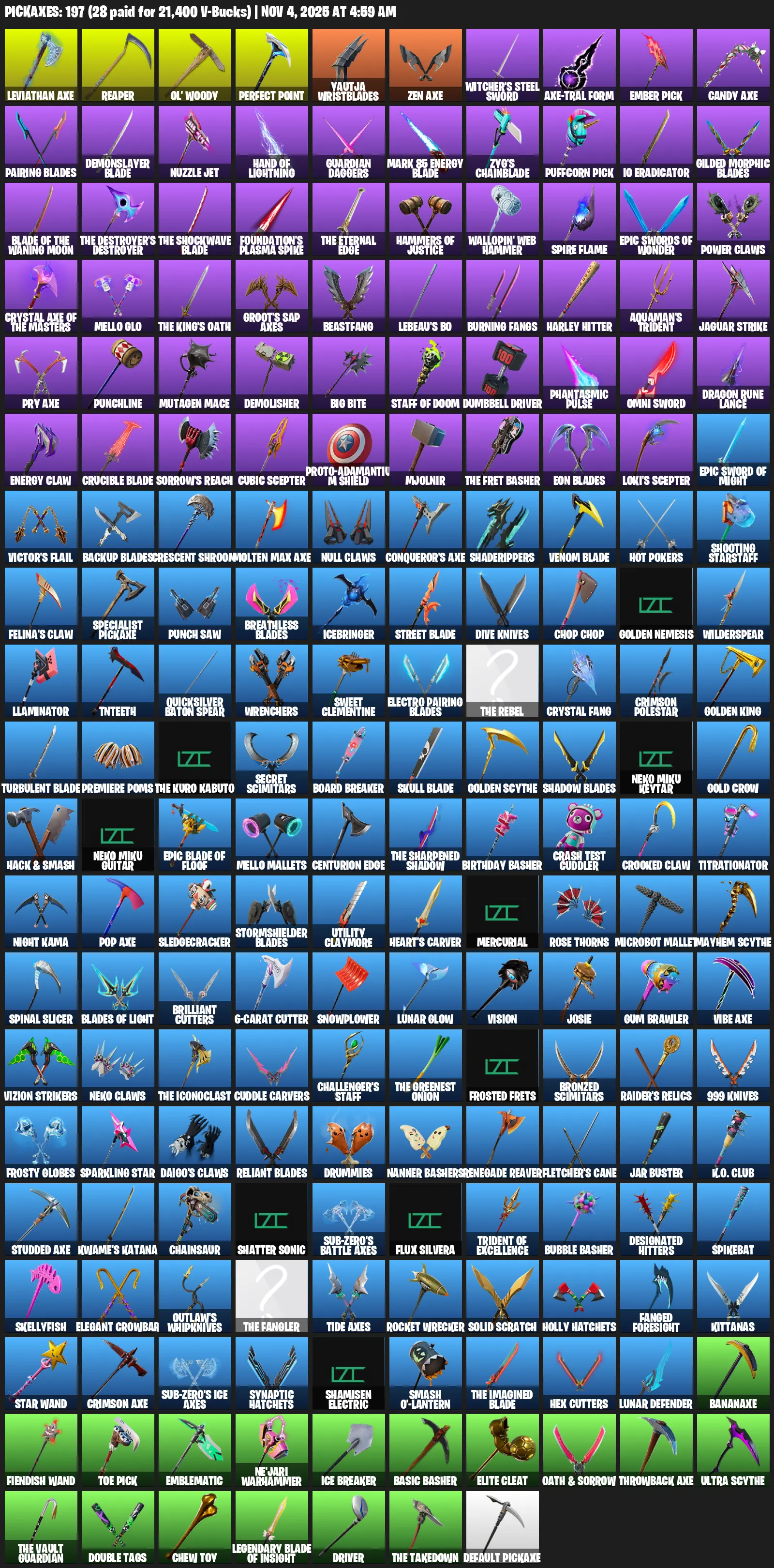 [PC/PSN/XBOX] | 222 skins | 4850 V-bucks | Leviathan Axe | Lara Croft | Fixer | Blizzard Bomber | Cloud Striker | Joey | Snap | Menace | S4G