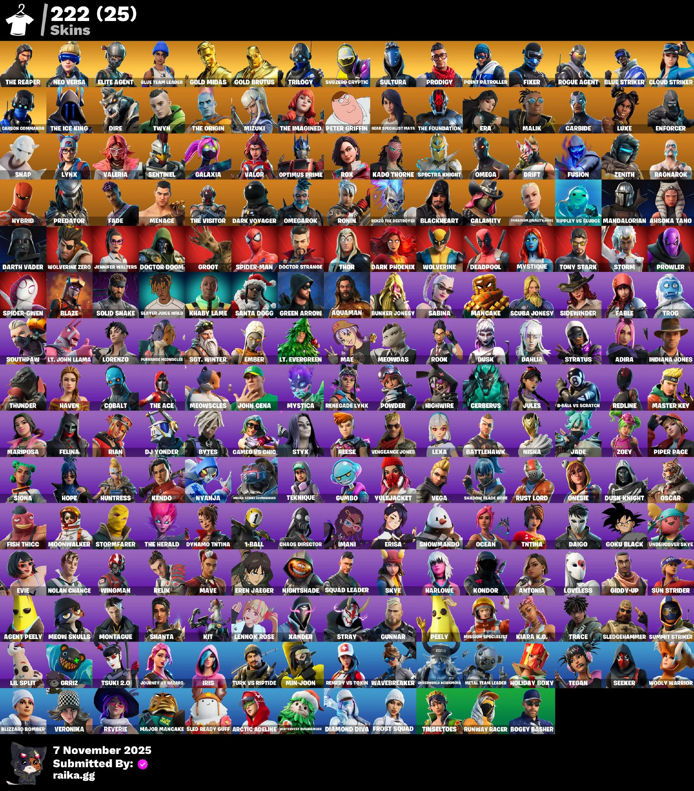 [PC/PSN/XBOX] 222 skins | The Reaper | Neo Versa | Elite Agent | Blue Team Leader | Gold Midas | Gold Brutus | Trilogy | Subzero Cryptic | Sultura | Prodigy | 800 VB