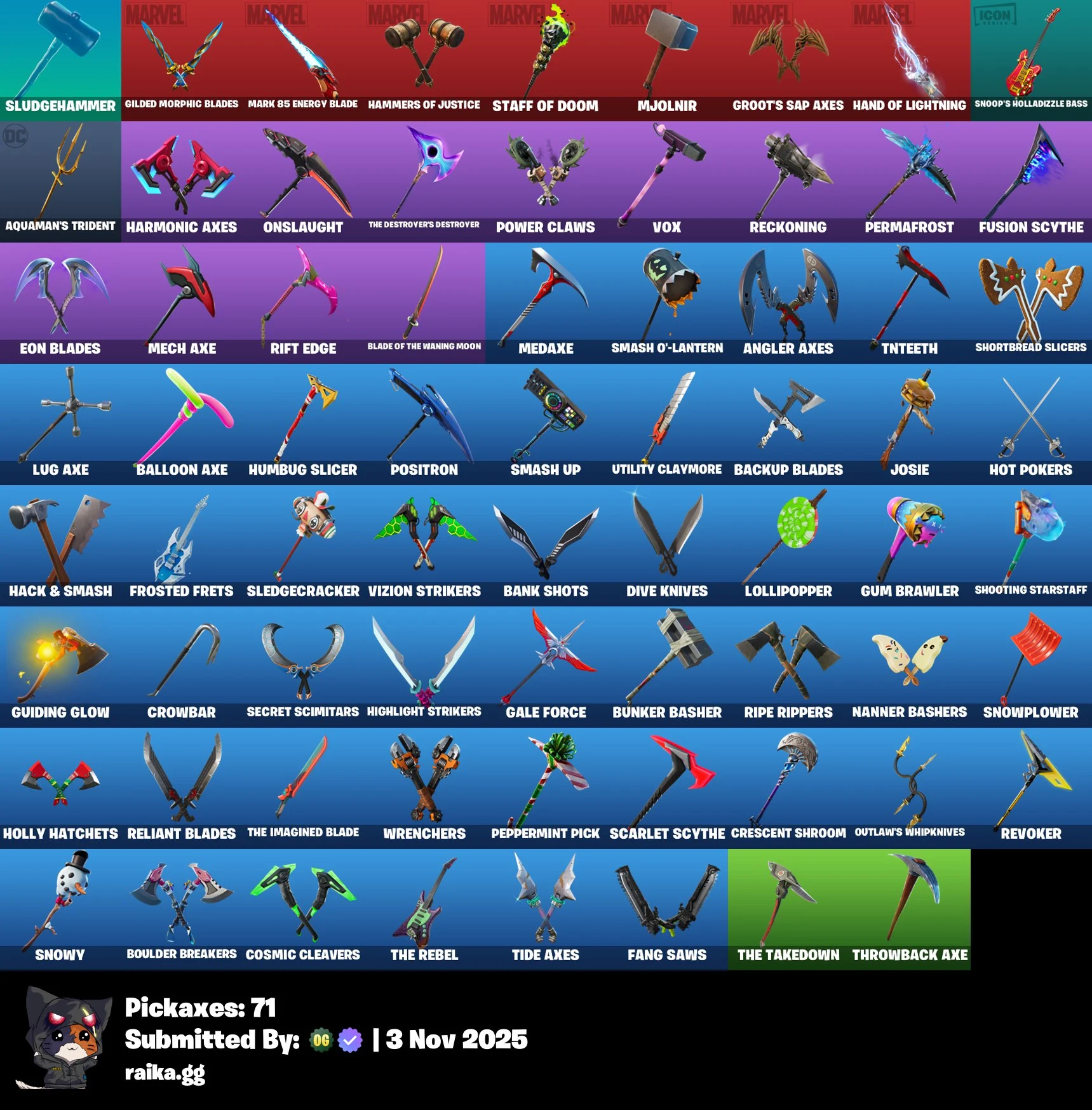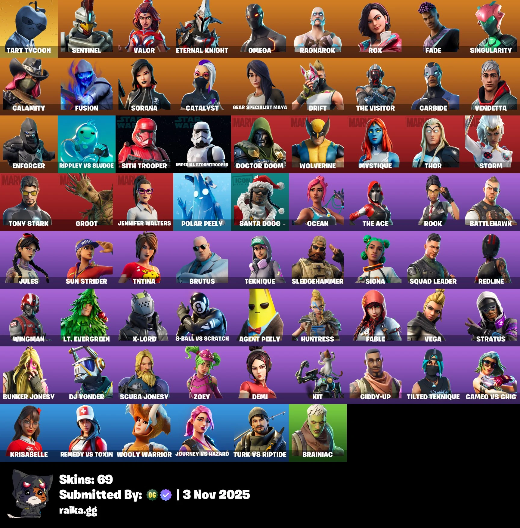[PC/PSN/XBOX] 69 skins | Tart Tycoon | Sentinel | Valor | Eternal Knight | Omega | Ragnarok | Rox | Fade | Singularity | Calamity | Fusion | Sorana | 150 VB