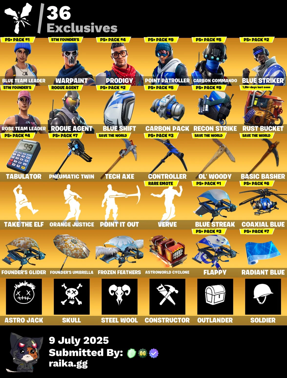 ⚡ [PC/PSN/XBOX] 84 SKINS | OG STW, Omega, Blue Team Leader, Prodigy, Point Patroller, Carbon Commando, Blue Striker, Rogue Agent, Midas, Verve, Orange Justice, Spectra Knight, Poseidon, Korra, Cerberus, Blackheart, 960 VB