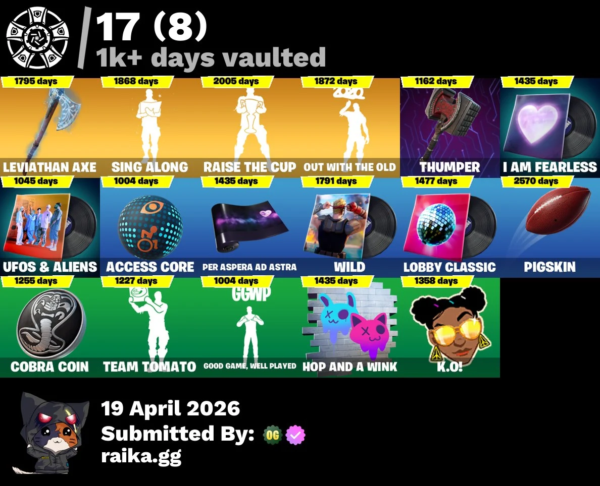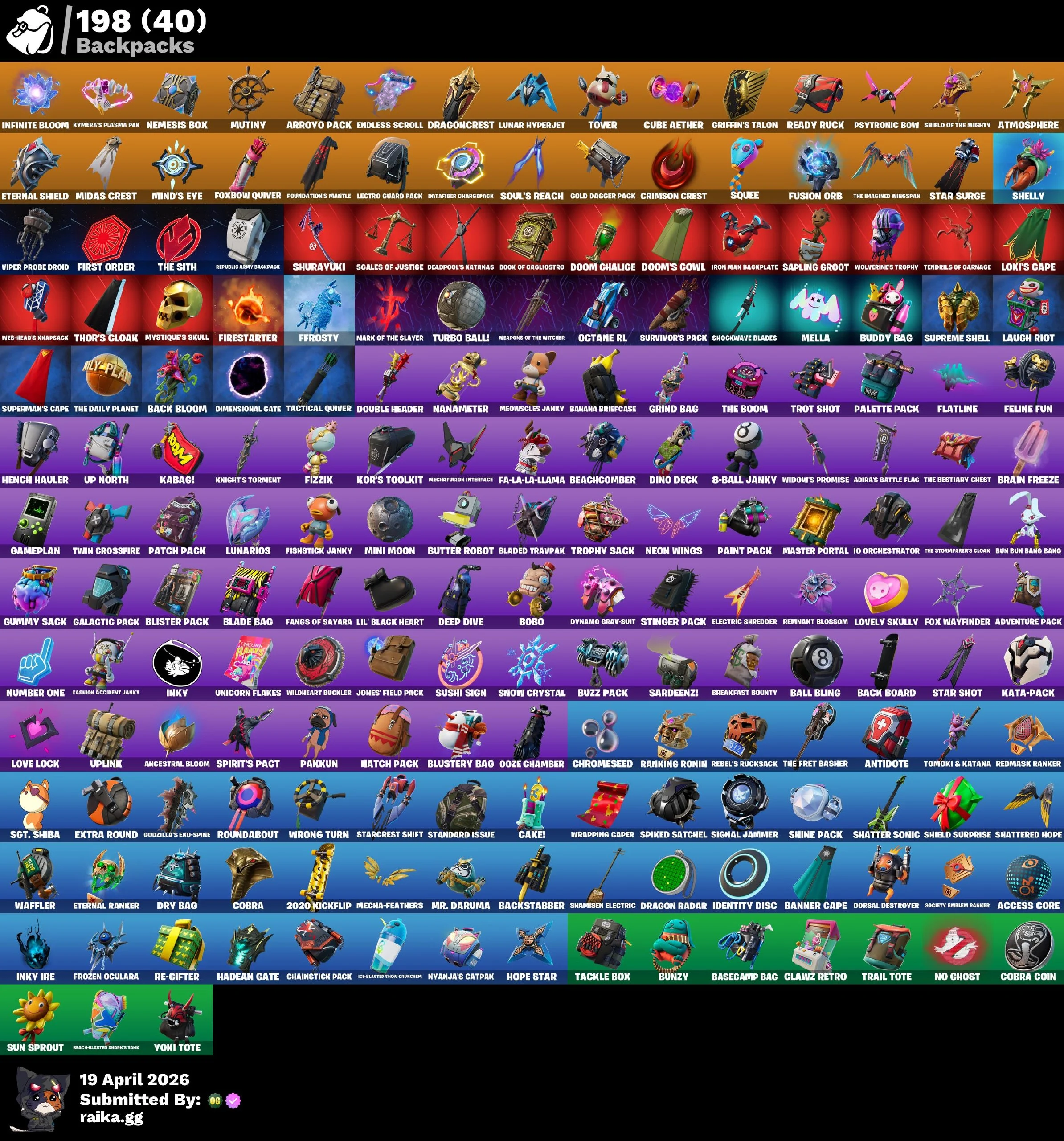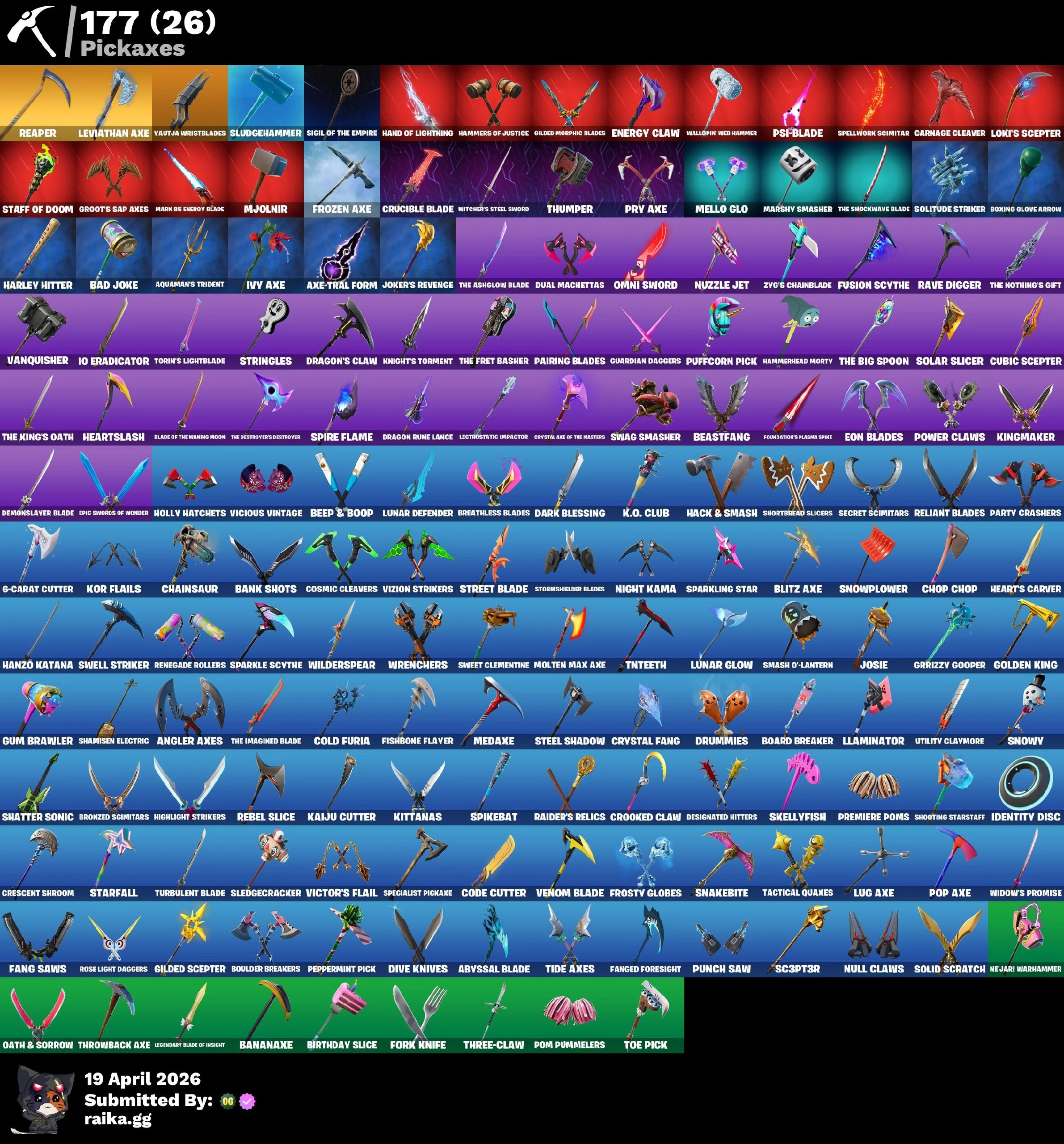 [PC/PSN/XBOX/Nintendo] 162 skins F/A : Leviathan Axe | Goku Black | Kakashi Hatake | Gold Brutus | Gold Midas | Gold Meowscles | Tart Tycoon | Sorana | The Scientist | The Imagined | Vi