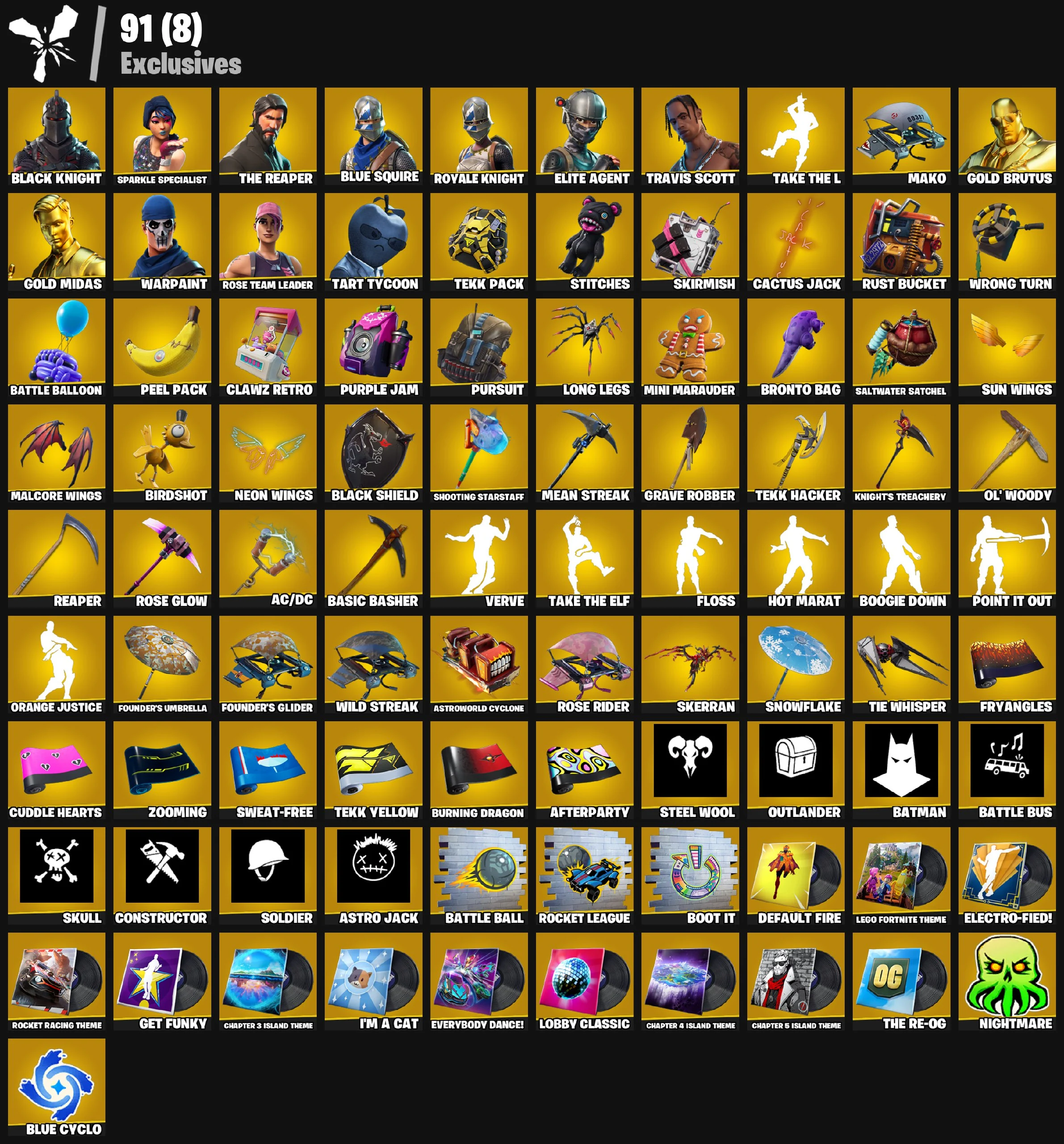 [PC/PSN/XBOX/SWITCH] 168 Skins | OG STW | Black Knight | Travis Scott | Sparkle Specialist | The Reaper | Blue Squire | Royale Knight | Elite Agent | Gold Midas | 70 VB | Email Changeable + Original Email