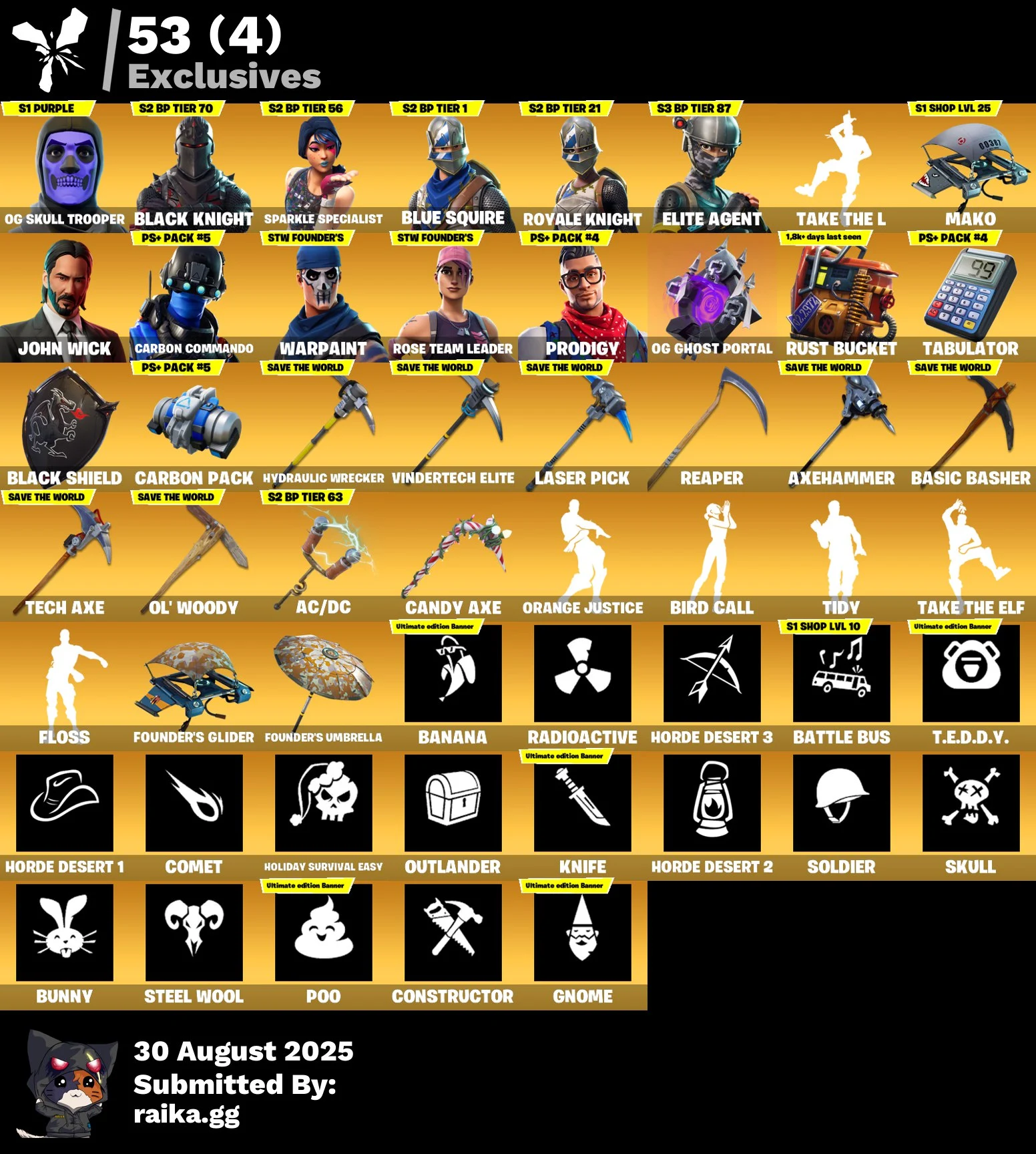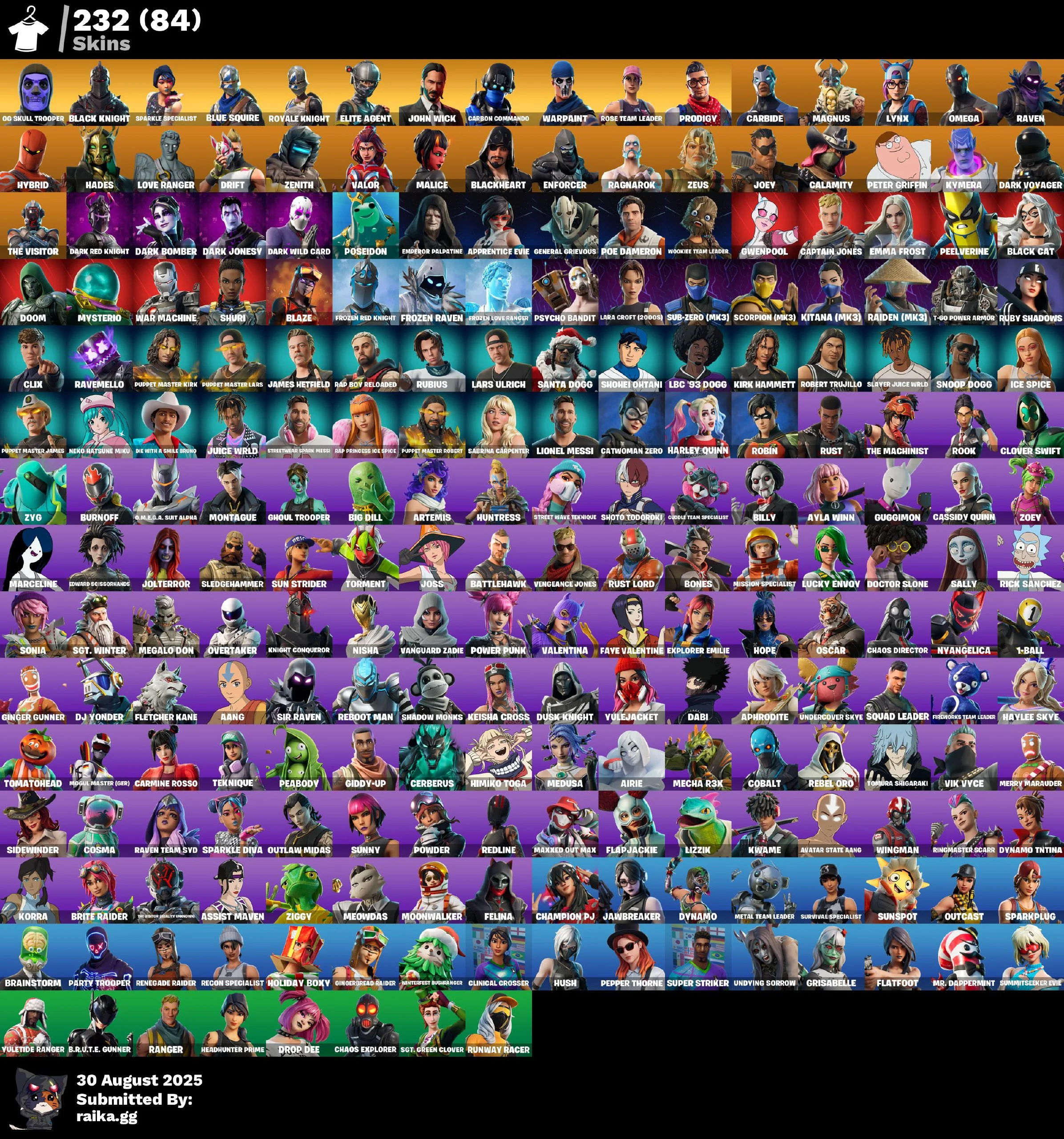 [PC/XBOX] 232 skins | OG STW | Renegade Raider | Og Skull Trooper | Black Knight | Sparkle Specialist | Blue Squire | Royale Knight | Elite Agent | #E880 #MBFN