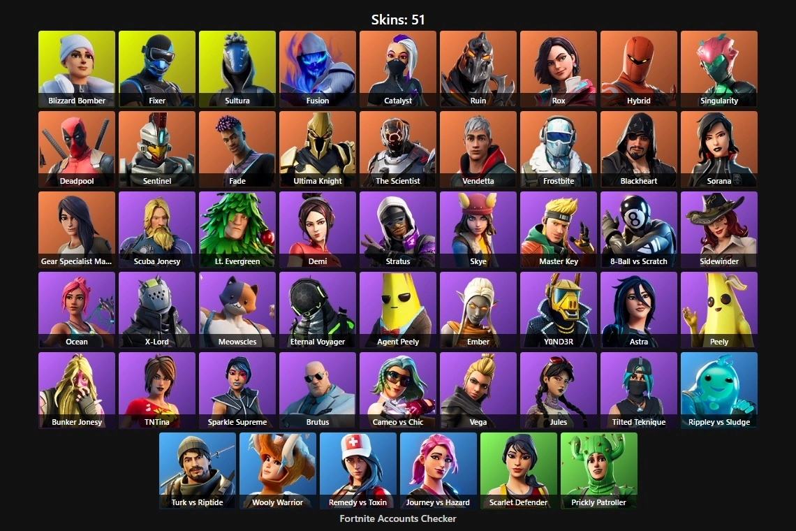 PC/XBOX 51 Skins⭐️ | Deadpool | Peely | Blizzard Bomber | Fixer | Sultura | Fusion | Catalyst | Ruin | Rox | Hybrid | Singularity | Sentinel | Fade