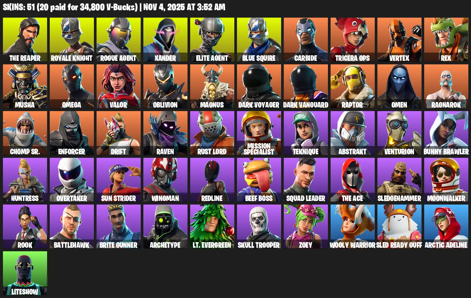 [PC/XBOX] | 51 skins | Take The L | Royale Knight | The Reaper | Elite Agent | Blue Squire | Omega | Rogue Agent | Xander | Carbide | #UYO7844 | #MBFN