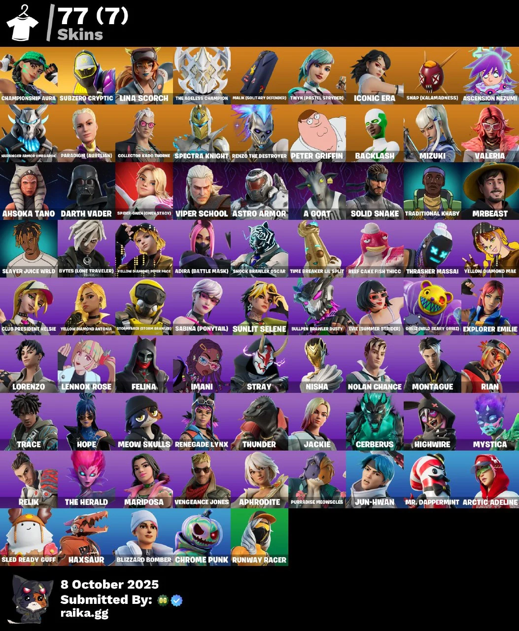 [PC/XBOX] 77 skins | Championship Aura | MrBeast | Subzero Cryptic | Lina Scorch | The Ageless Champion Bek106