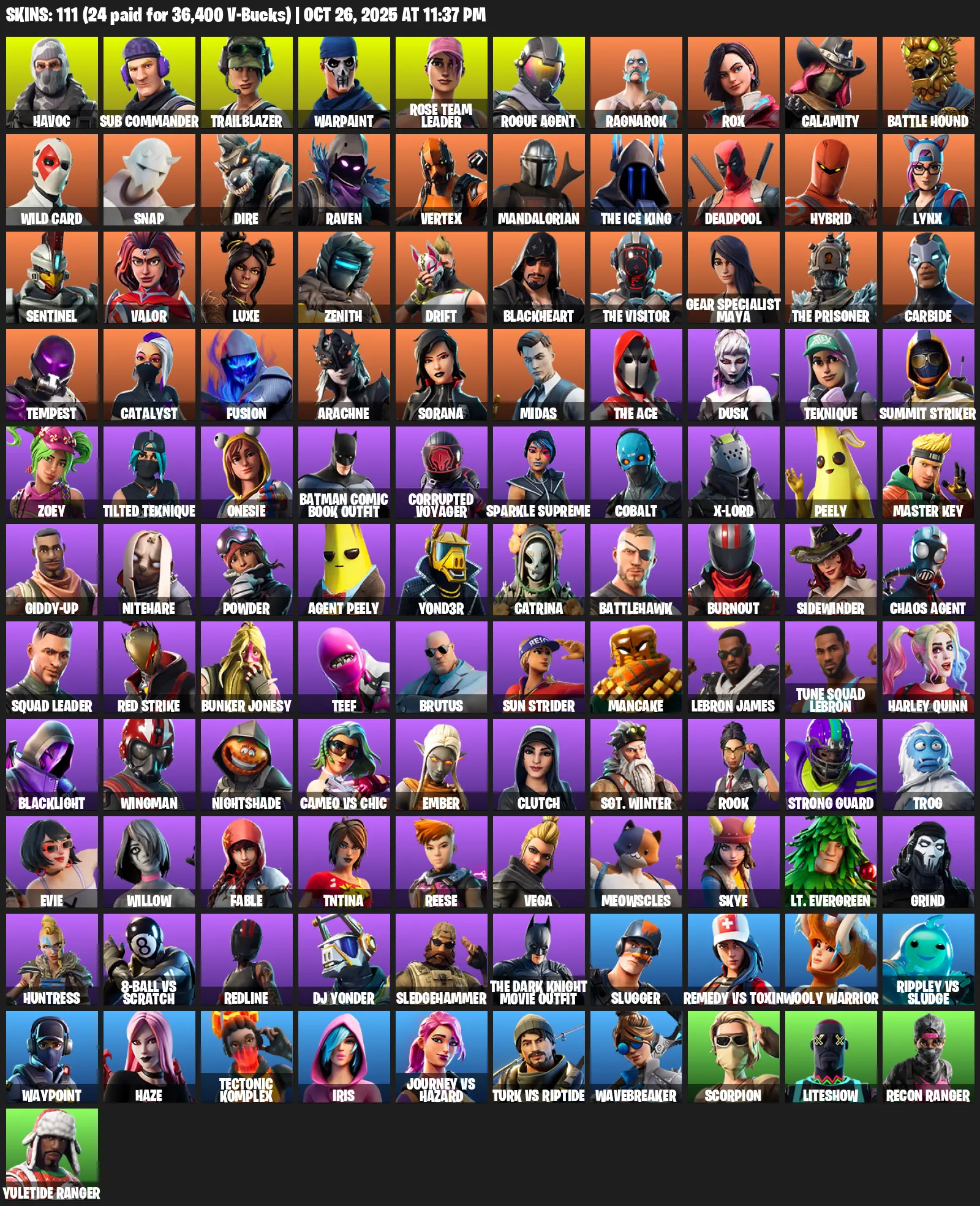 [PC/XBOX/PSN] 111 Skins | Havoc | Sub Commander | Trailblazer | Warpaint | Rose Team Leader | Rogue Agent | Ragnarok | Rox | Calamity | Battle Hound | Wild Card | Snap | Dire | Raven | Vertex | Mandalorian | The Ice King | Deadpool | Hybrid | Lynx