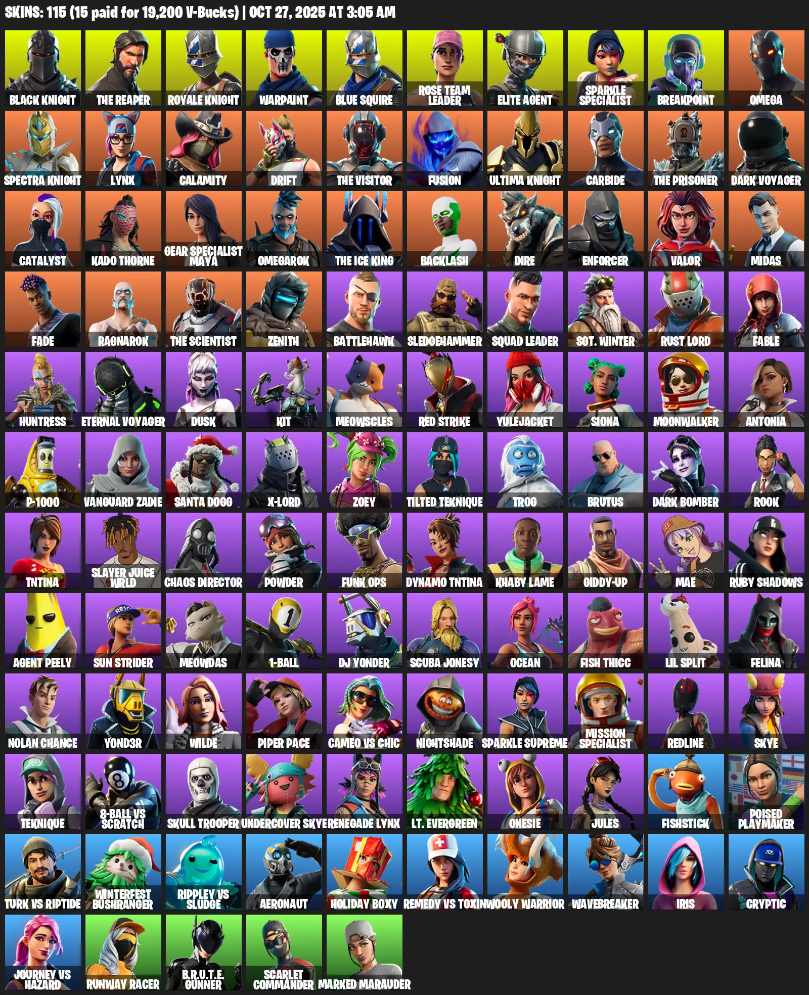 [PC/XBOX/PSN] 115 Skins | Black Knight | The Reaper | Royale Knight | Warpaint | Blue Squire | Rose Team Leader | Elite Agent | Sparkle Specialist | Breakpoint | Omega | Spectra Knight | Lynx | Calamity | Drift | The Visitor | Fusion | Ultima Knight