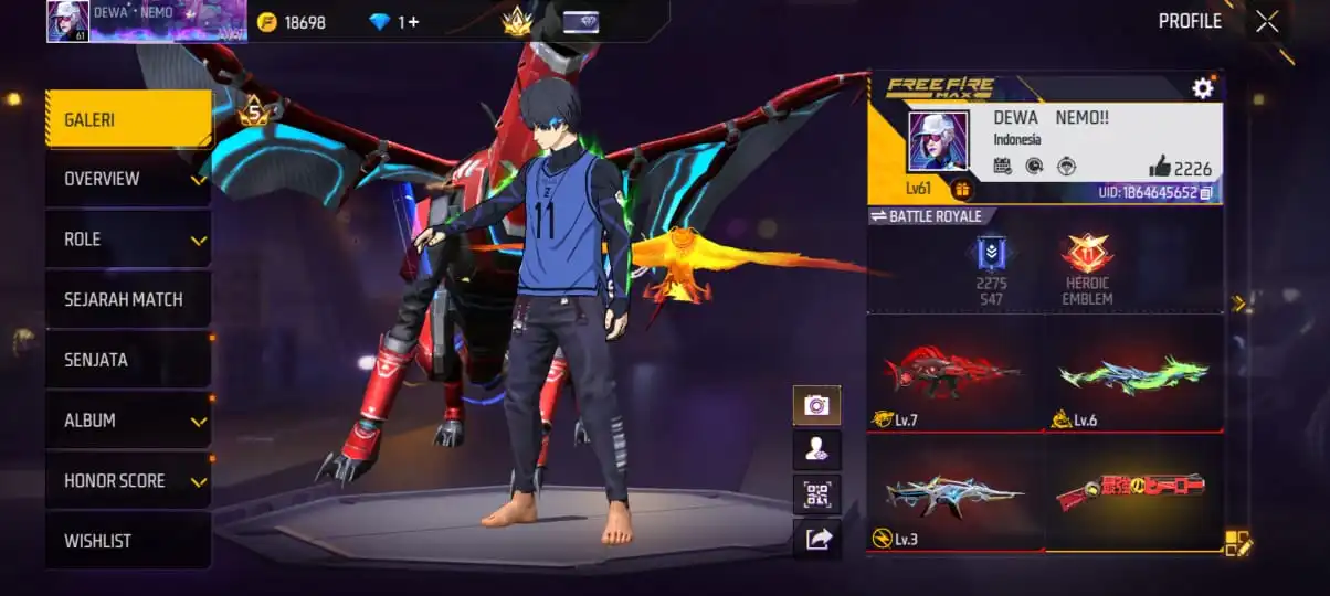 WR15|LVL61|284 COSTUME( 19 MYTHIC)|301WEAPON( 4 EVO+62MYTHIC)SCAR MEGALODON ALPHA LVL-7lPARAFAL LORE CYCLONE LVL-6lM1887 ONE PUNCH MAN