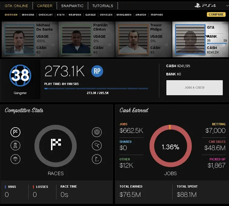 🏦 [PS4] GTA 5 Modded Account $240K (Cash + 19 Cars) | RP Rank 35 | Total Access | Rapid Delivery | Deluxe Set | OA61
