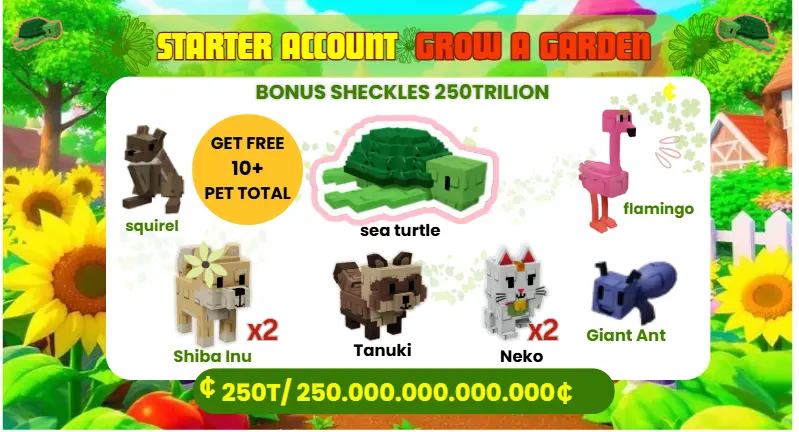 Account GAG Elite Edition | Sea Turtle + 10 Pets + 250T Shekcles Bonus | Grow A Garden
